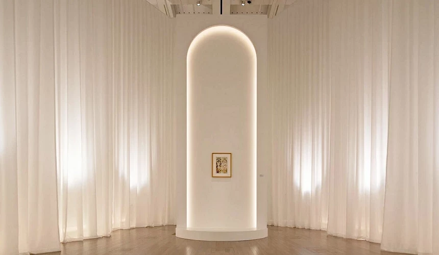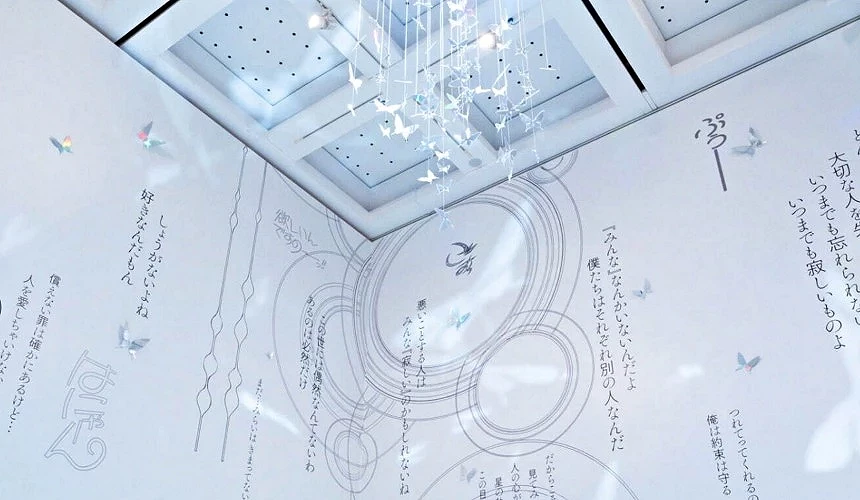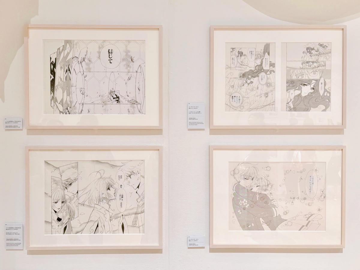 在「IMAGINATION」展區呈現了CLAMP多年的創作軌跡,包括畫材、動畫角色設計草圖與腳本等珍貴資料,讓觀眾深刻了解到CLAMP作品背後的創作過程。而最後的「DREAM」展區則以充滿神聖氛圍的純白挑高空間,展示了一幅CLAMP為本展特別繪製的作品,象徵著他們從初始到未來的創作夢想。