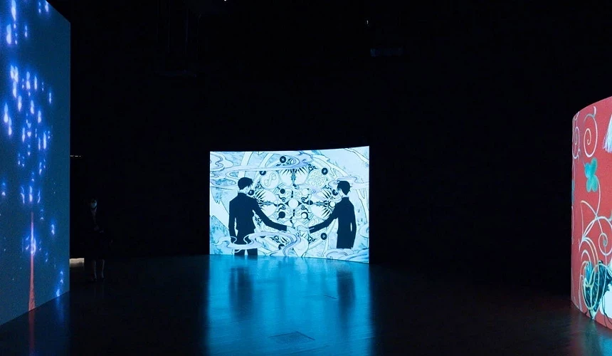 「MAGIC」展區是展覽的一大亮點,這裡設置了大型投影和互動裝置,讓觀眾被巨大的魔法陣和奇幻生物包圍,使人彷彿置身於CLAMP的魔法世界。此外,「PHRASE」展區讓參觀者通過選擇和拼貼詞彙,與展覽裝置互動,親身體驗漫畫中語言的力量,這樣的設計既有趣又充滿寓意!