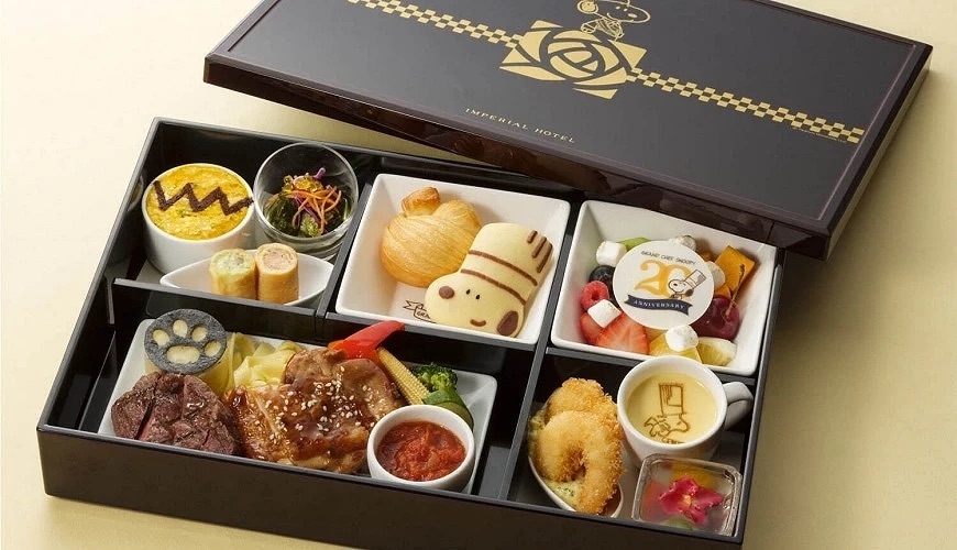 來到東京帝國飯店一樓餐廳「Parkside Diner」,這裡可以享用到以《花生漫畫》為靈感設計的豪華日式便當「BENTO by Grand Chef SNOOPY」。這些便當菜色精緻,包括史努比主廚形狀的麵包、印有糊塗塌客圖案的豆奶糕,以及20週年紀念logo巧克力和棉花糖等,每一口都是視覺和味覺的雙重享受!