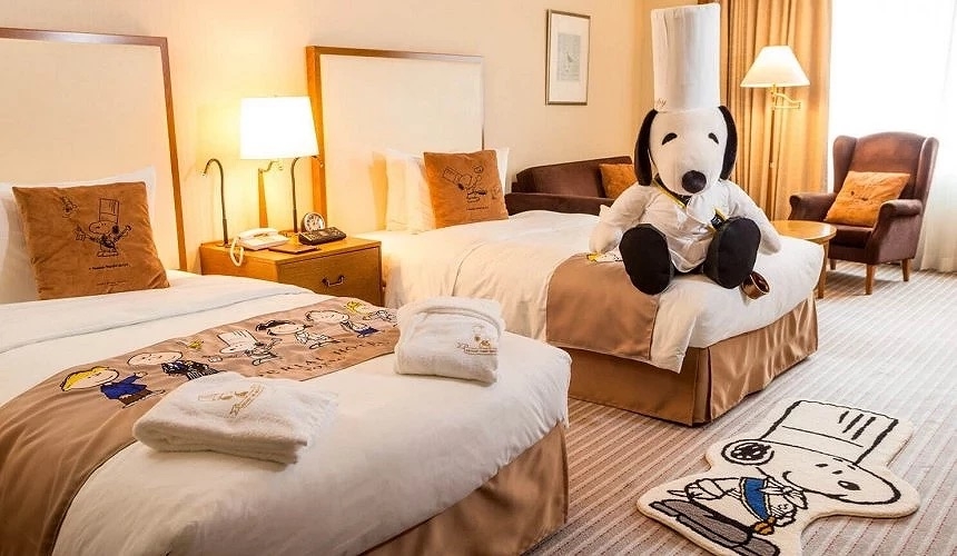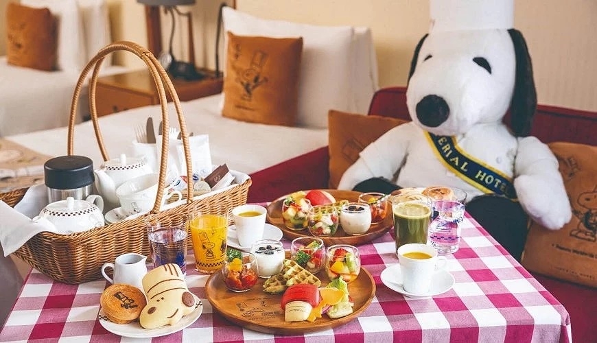 東京帝國飯店的史努比主題客房,從床單、枕頭到地毯和毛巾,每一樣物品都充滿史努比主廚的可愛身影。除此之外,入住客房還能獲得一隻巨大的「史努比主廚絨毛布偶」,陪伴你每晚甜蜜入睡。而且客房還提供限定史努比主題早餐,無論是餐具還是食物,全都是滿滿史努比元素,讓人一早就感到無比幸福。