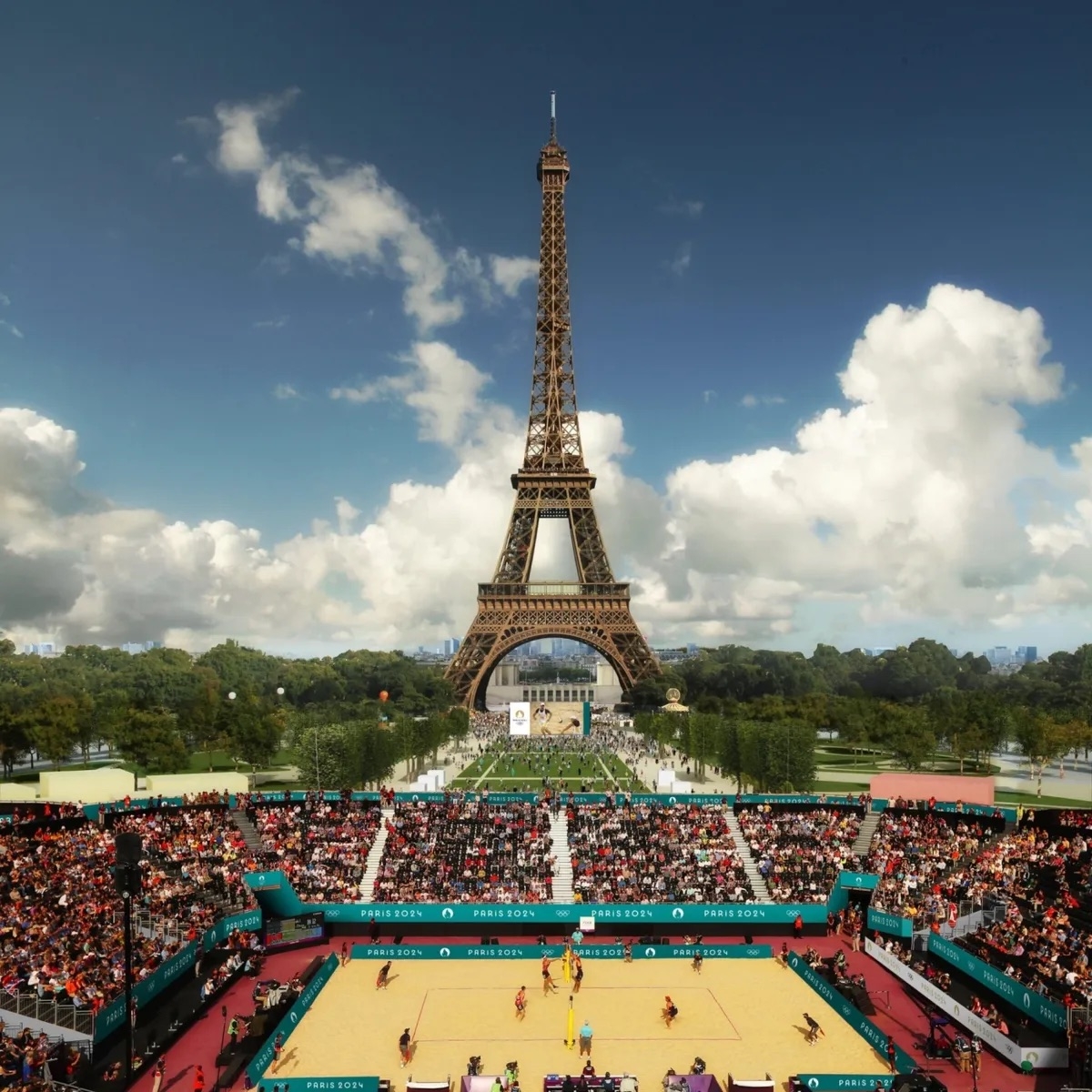 提到巴黎最具代表性的地標,那就非艾菲爾鐵塔莫屬~鐵塔前興建臨時體育館舉辦沙灘排球比賽;戰神廣場為柔道與摔角的賽事場地。