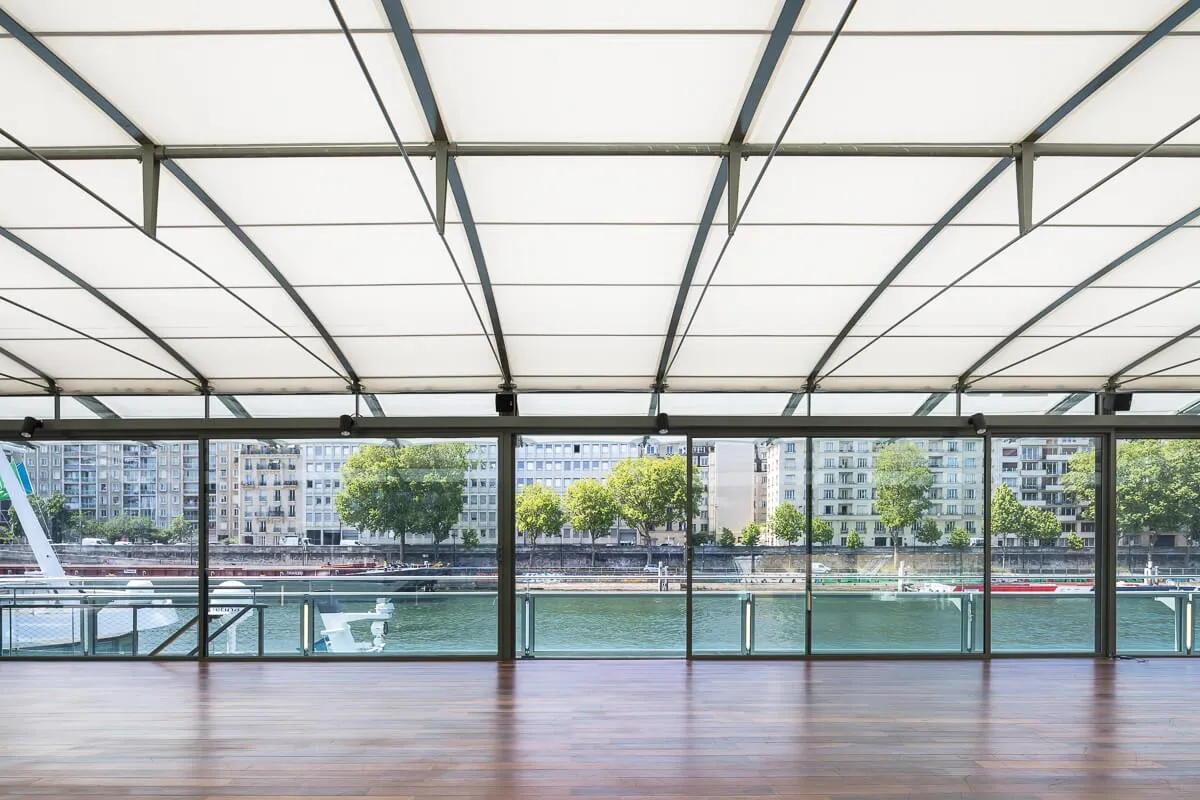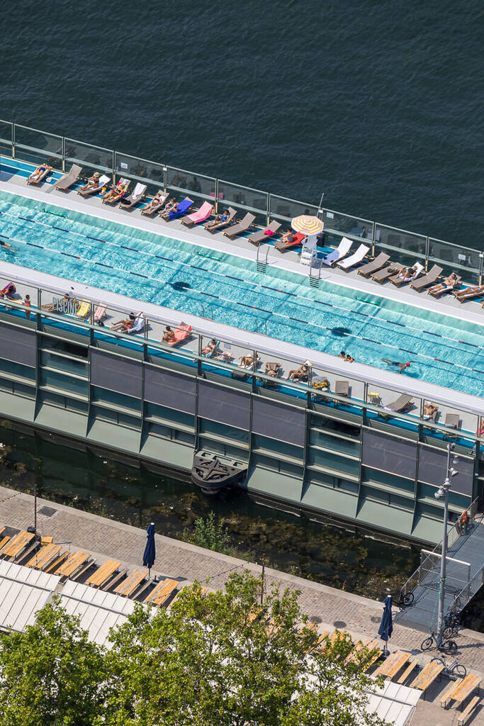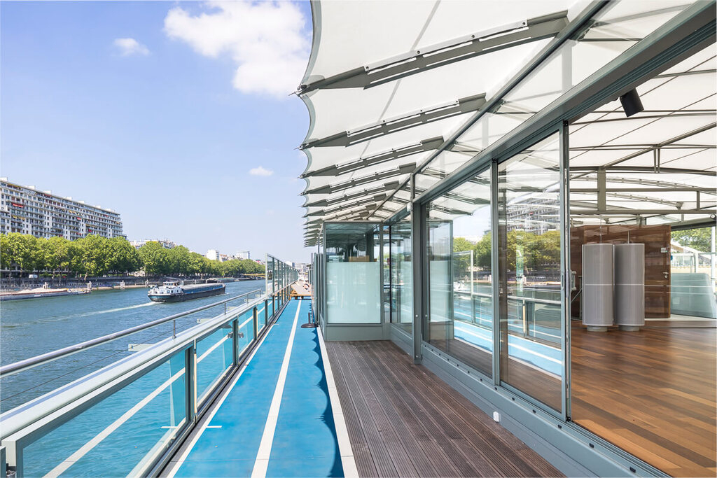 Annette K懸浮泳池位於巴黎市中心的塞納河畔,從遠處看,它就像是一艘停靠在岸邊的巨型郵輪,最上層配備奧林匹克規格的戶外透明泳池,在游泳時可以盡情欣賞巴黎河岸美景。此外,泳池加熱系統還能確保冬季或下雨天時也能享受游泳的樂趣。
