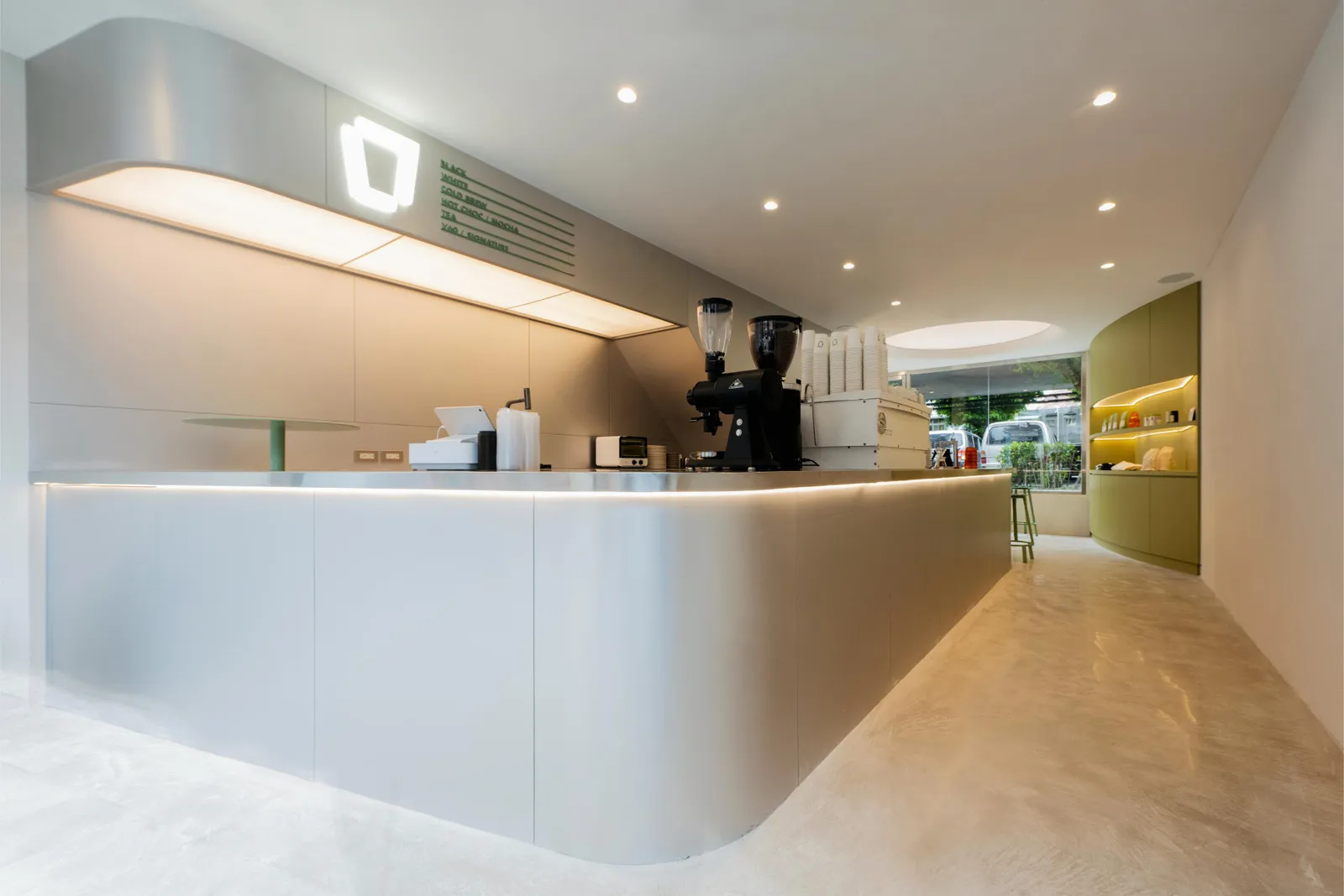 而店內空間設計更體現了極簡美學,大片玻璃窗引入自然光線,打造出放鬆愜意的空間。在這裡享受一杯咖啡的悠閒時光,值得體驗!