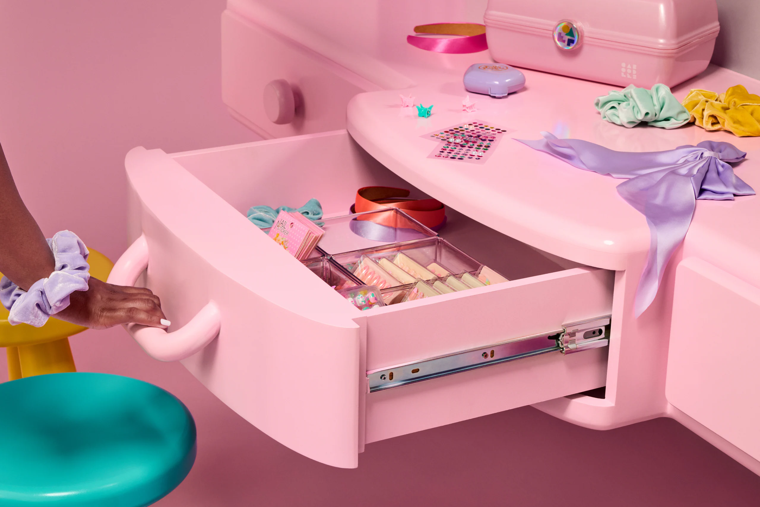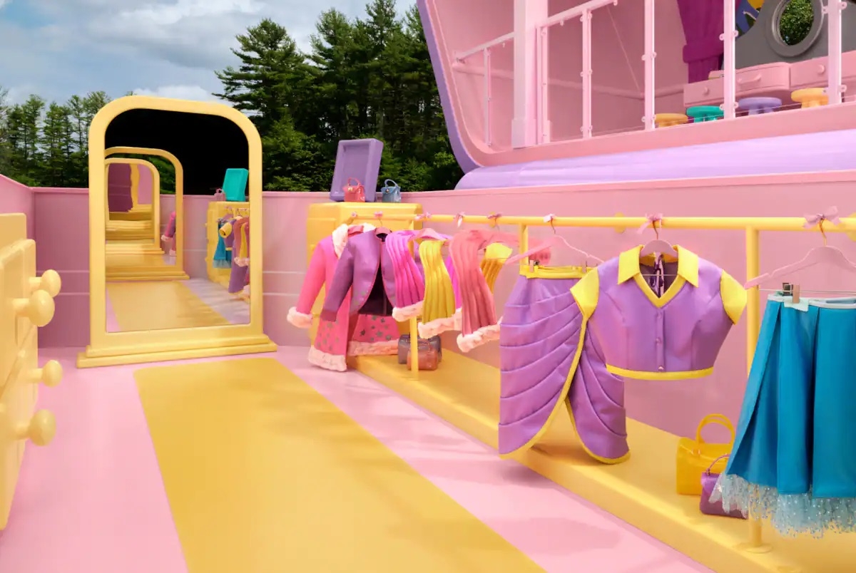 這座夢幻宅邸不僅重現粉餅盒的外觀,也充滿了互動和探索的樂趣!從芭比的梳妝台到衣櫃,每一個角落都能讓你親身使用。