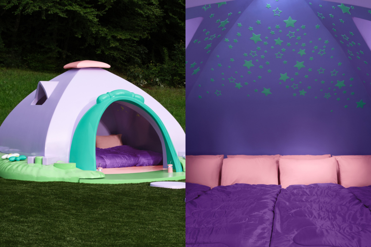 無論是粉彩色的房間、芭比風格家具和紫色帳篷,都讓人彷彿走進那個兒時的童話世界。