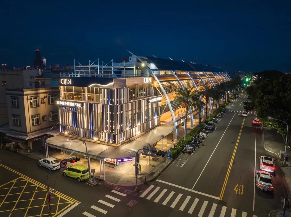 高雄旗津熱門景點「旗后觀光市場」在重新改造後,以全新面貌迎接遊客。這次外觀不僅換上了以「落日餘暉」為靈感的波浪外牆,還加入LED燈光設計,無論白天或夜晚,市場都能展現出不同的多元風貌,讓人感受到旗津的獨特魅力。