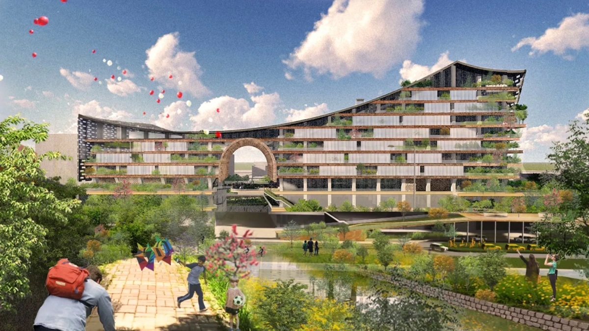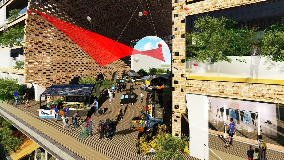 空中鳳城的設施十分多元,A棟的二、三樓將有百貨公司進駐,四到七樓規劃為青創空間和國民運動中心,頂樓則設有空中禮堂。
