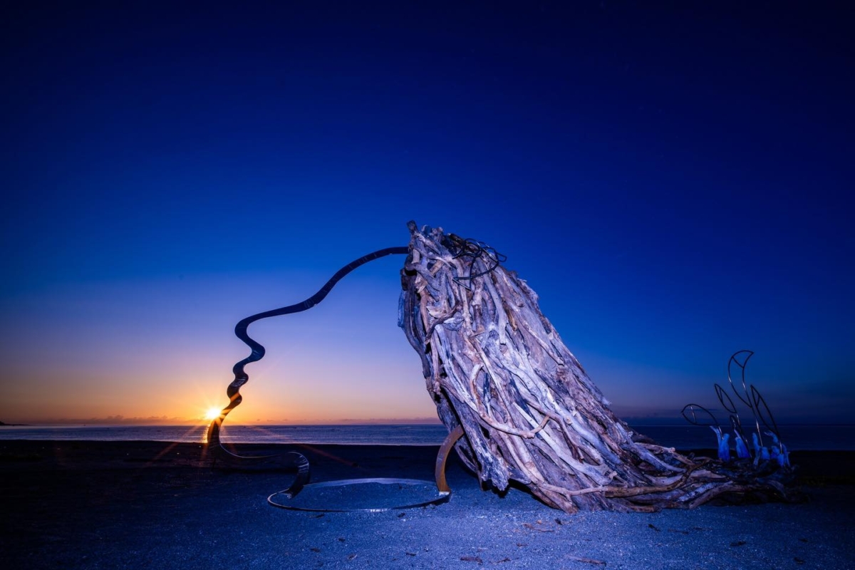 馬來西亞藝術家陳抒漫以希臘神話中大地之母「蓋婭(Gaia)」為靈感,利用漂流木呈現女性溫柔的側臉、輪廓柔美的海岸線,呼籲人類使用海洋資源的同時,要重視保育和永續發展,才能循環不息。