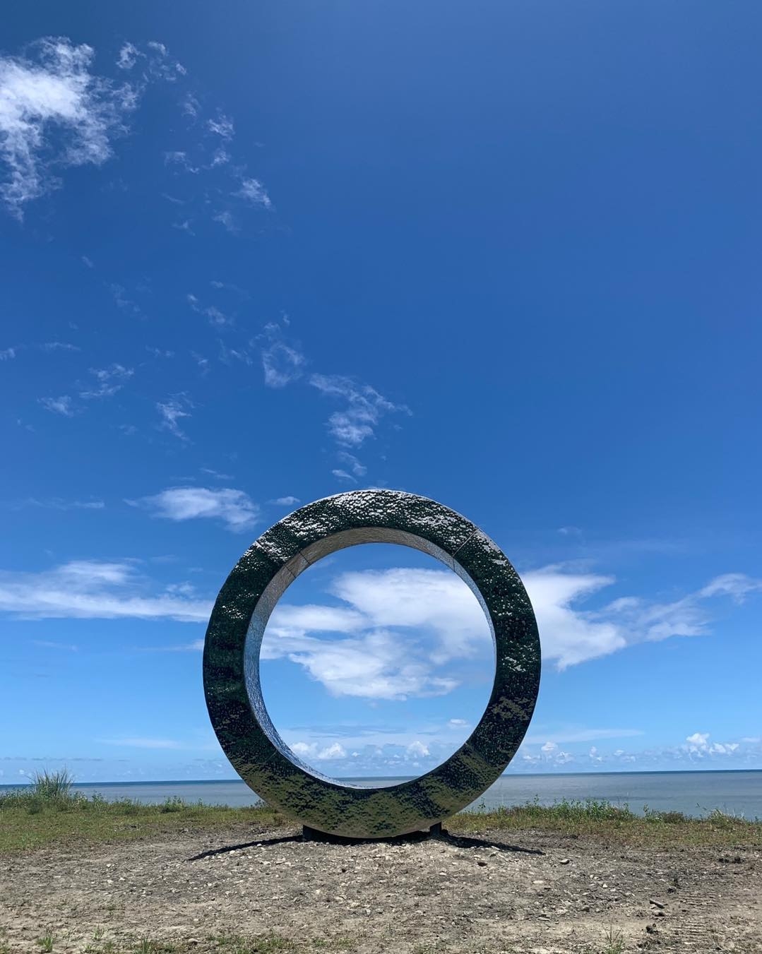 南非藝術家Marco Cianfanelli走入南田部落,深受排灣族故事與傳統文化吸引,便以鏽蝕的低碳鋼創作拱門作品。在海洋和天空相映之下,呈現出一個年輕頭部的輪廓,欣賞作品時與太平洋相望,感受傳承及守護文化的心意。
