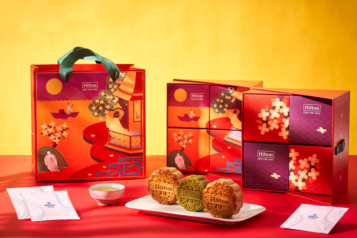 台北新板希爾頓酒店推出「花影月色映中秋」禮盒,設計靈感來自南宋詞人辛棄疾詩句,傳達濃烈的節慶氛圍,內有XO醬珍海味、棗泥核果、抹茶可可流芯等口味月餅。