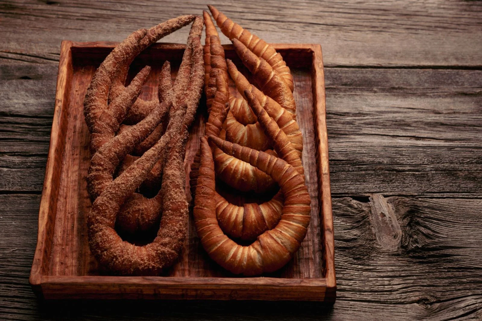 這次快閃共帶來15款麵包,其中最具人氣的為「新月羊角」與「鹽奶油捲」,經常一出爐就被掃空。被譽為世界最美的「新月羊角」將麵糰厚度桿至1mm薄,再纏捲超過26層,雖然只用橄欖油與灰海鹽調味,但吃起來頂端酥脆、底部Q彈,為單日銷售破500個的冠軍品項。
