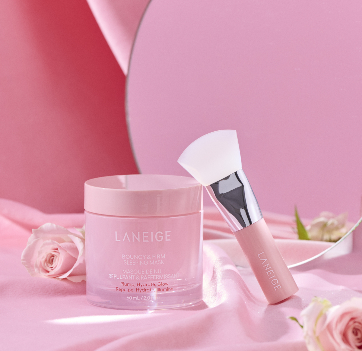 粉澎潤晚安面膜裡的牡丹膠原蛋白複合物™,就像給你的肌膚打了一劑彈力針,邊睡邊讓鬆垮的臉瞬間澎回來,粉澎潤睡美人晚安面膜蘊含45,000顆透光鎖水微囊,一抹上去,這些微囊就會化開並瞬間被皮膚吸收,為肌膚形成一道隱形的保濕屏障,整晚都在幫你鎖住水分,另外還加入了LANEIGE蘭芝的專利技術「牡丹舒眠專利香氛™」,睡前搭配專屬的面膜刷使用,輕輕一刷,療癒感爆棚,伴隨香氣直接進入甜美夢鄉,一覺醒來就能擁有粉保濕、粉澎潤、粉光澤的好膚質,連素顏都能自信爆棚,原來要養成韓妞的澎澎水光肌真的沒有想像中難!