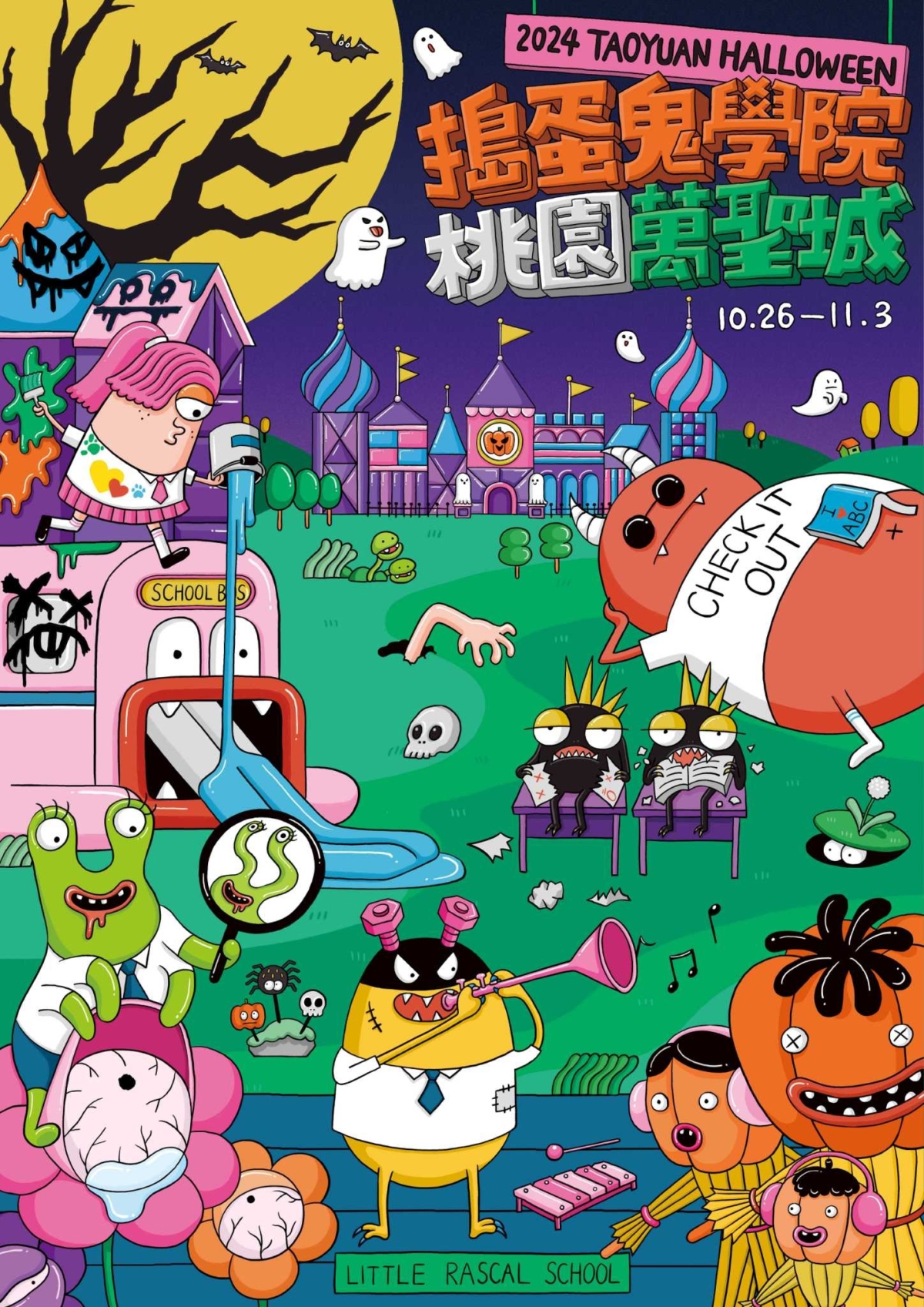 2024桃園萬聖城展開一連9天的搗蛋鬼學院,集結多達百攤萬聖特色市集、限定造景與金曲表演,邀請大家進入充滿驚喜與奇幻的搗蛋鬼世界。