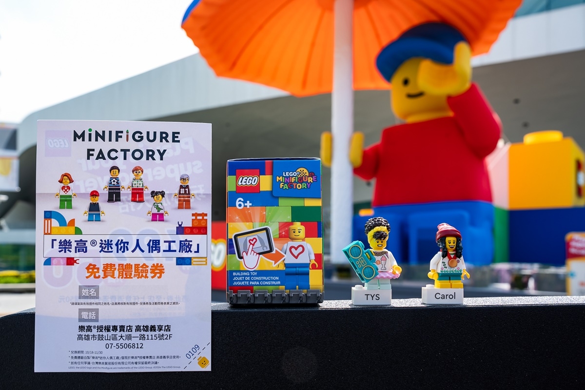 為讓樂高迷更能發揮天馬行空的想像力及創造力,即日起11/30止,前1,000名填寫體驗問卷,並完成活動關卡,就有機會獲得至樂高專賣店(高雄義享時尚廣場A棟)免費體驗自製「樂高迷你人偶工廠」!或是憑加碼活動兌換券,消費滿499元折抵50元。