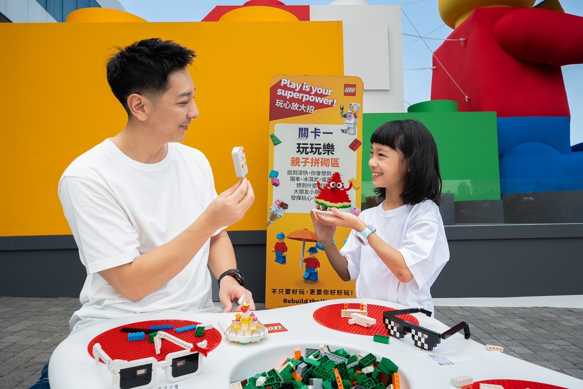 除了必拍的9米巨型樂高外,現場打造四大體驗關卡,可以在「玩玩樂 親子拼砌區」拼砌自己心目中的降溫奇物;「拍拍照 美照拍貼區」帶著拼好的樂高,留下好玩合照;「吹吹風 風扇互動區」展現拼砌能力,驅動大風扇;「乘乘涼 樂高人撐傘區」完成指定社群任務,就可獲得「樂高® 降溫超能扇」。