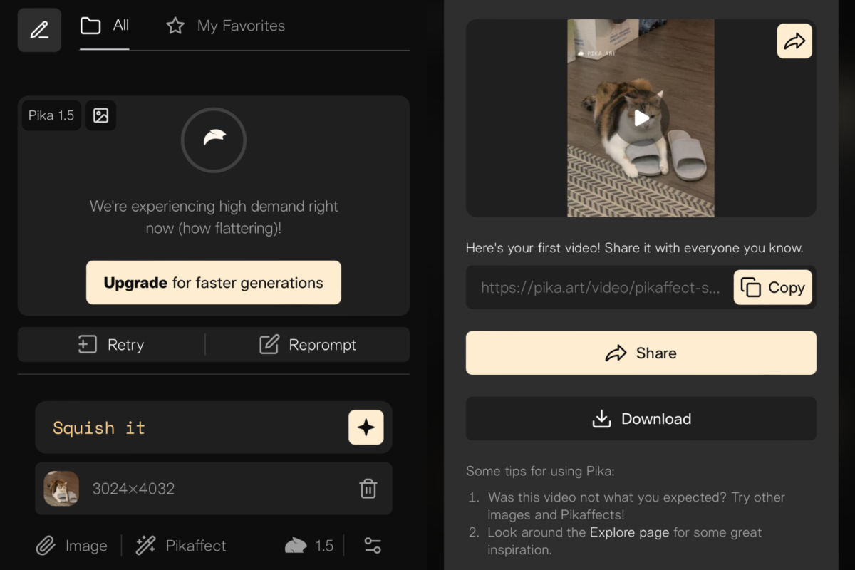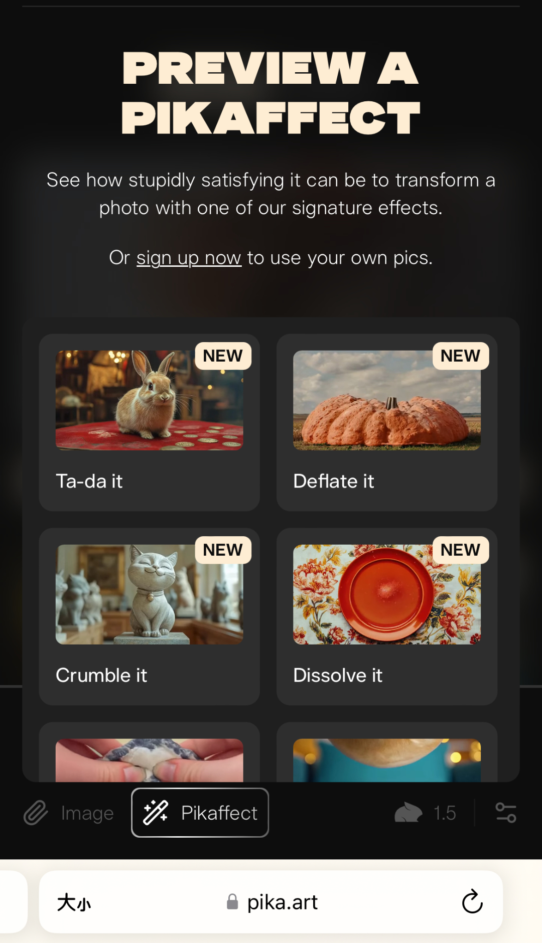 如果不想等太久,或者想去除網站浮水印,也可以選擇升級為付費用戶,享受更快速和無水印的作品。而除了Squish It特效,PIKA ART還有許多其它創意效果,快去探索看看,讓你的照片變得更加有趣吧~