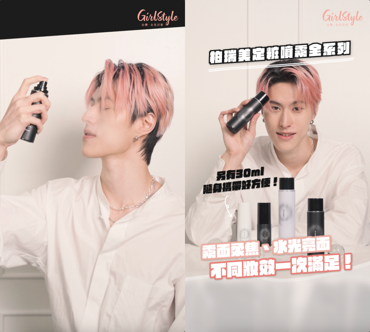 PRAMY柏瑞美噴霧全系列還提供霧面柔焦與水光亮面兩種選擇,也有30ML的小瓶裝設計,出門旅行時超方便,隨身攜帶毫無負擔!有了它們就能告別脫妝煩惱,任何時刻、任何場合都能完美出場,讓妝容都能保持如新,甚至比剛畫好時更自然好看,24H一整天都是最美的自信狀態!