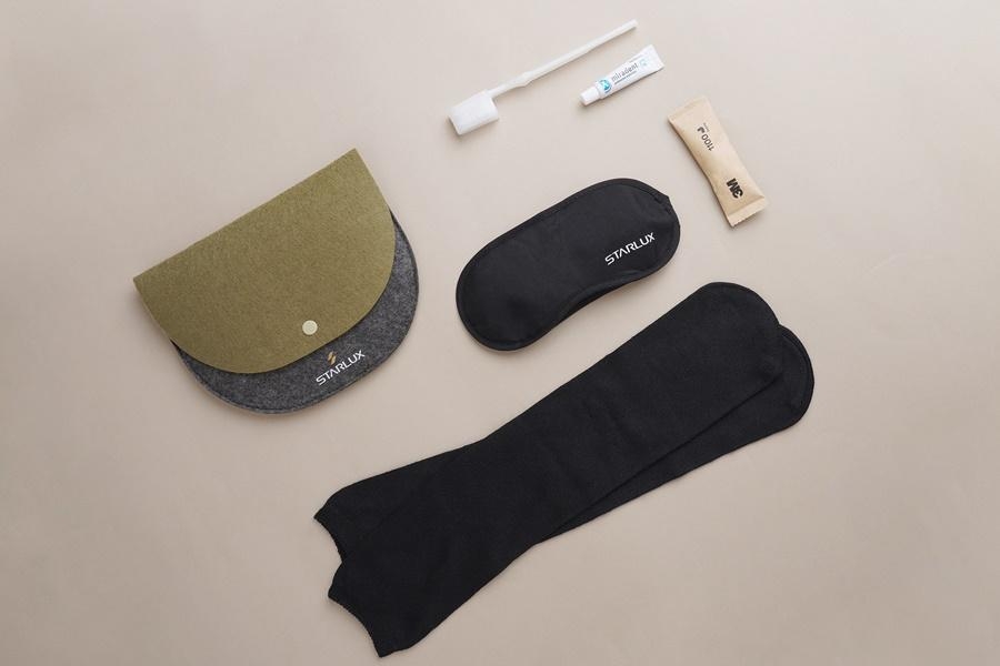 延續環境友善理念,星宇航空以寶特瓶回收材料製成的過夜包,降低環境影響。簡約設計的過夜包內提供梳洗備品如牙刷、眼罩、襪子等等,讓長途旅程在眨眼間輕鬆度過!