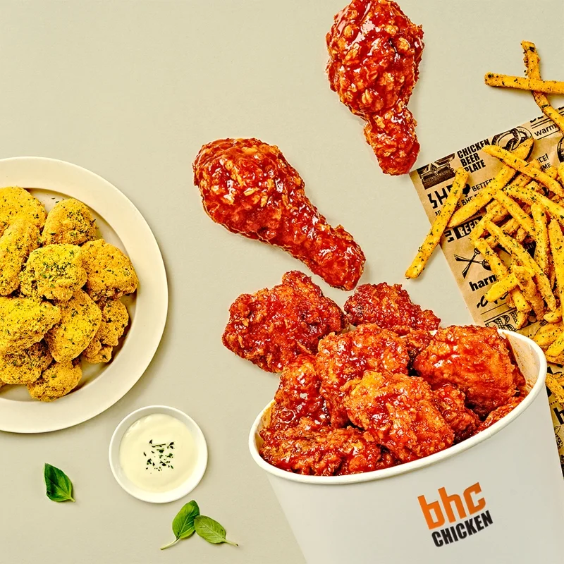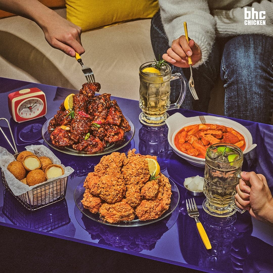 BHC「起司炸雞」堪稱必點經典,外皮酥脆的雞肉上灑滿香濃起司粉,再搭配特製優格沾醬,一口咬下太幸福!而除了炸雞外,店內也提供多種副餐,像是起司球、起司薯條和年糕等,讓每一餐都有豐富的選擇。