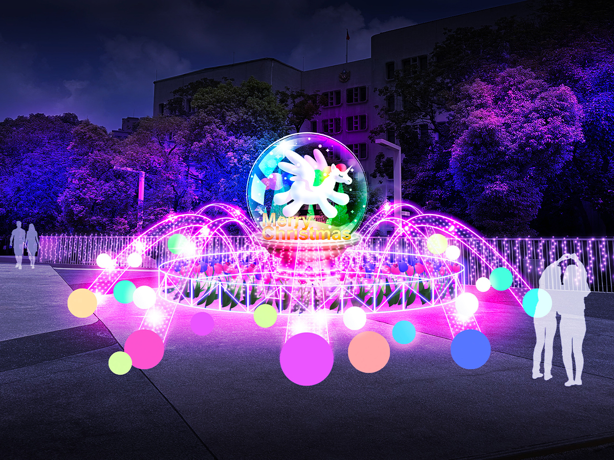 市府大廳及站前廣場皆設置機械動態燈組,將定時飄放浪漫雪花,以及運用LED燈光主秀導入AR濾鏡及心理測驗等互動體驗,沉浸式感受魔幻魅力。