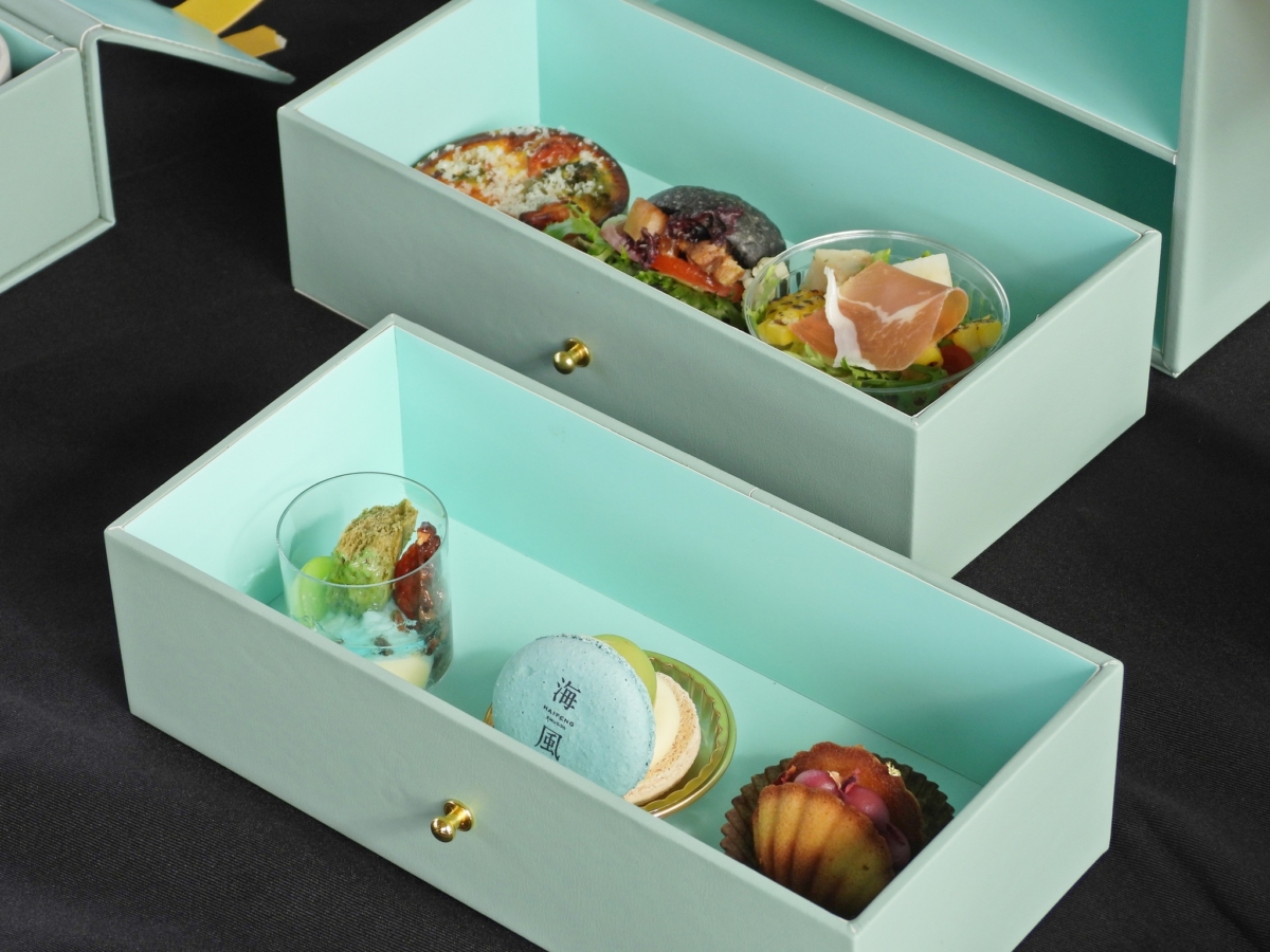 至於大家超期待的車上餐點,邀請到台灣甜點品牌「MANO MANO」客製專屬甜點,結合和本土食材打造「綠葡萄貝殼馬卡龍」、「玫瑰夾心瑪德蓮」、「擂茶米香可麗露」等法式甜點與輕食。更有榮獲全球首間米其林一星的「MINIMAL」冰淇淋,有「楊桃春茶」與「乳酸紫蘇」2款口味選擇,分別呈現海風與夏日清涼印象。