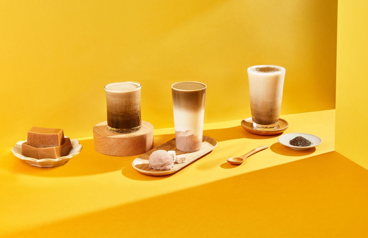 這次的焙茶系飲品還新增了「焦糖布蕾」配料,口感Q彈滑嫩,入口即化,並帶有濃郁的焦糖香氣。建議搭配鮮奶或焙茶拿鐵,讓整杯飲品的層次更為豐富,入口更加幸福。