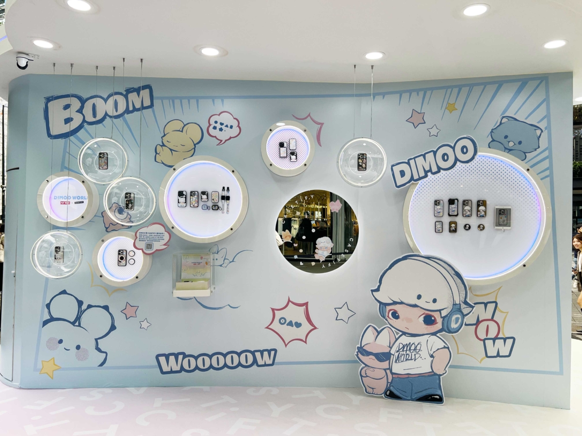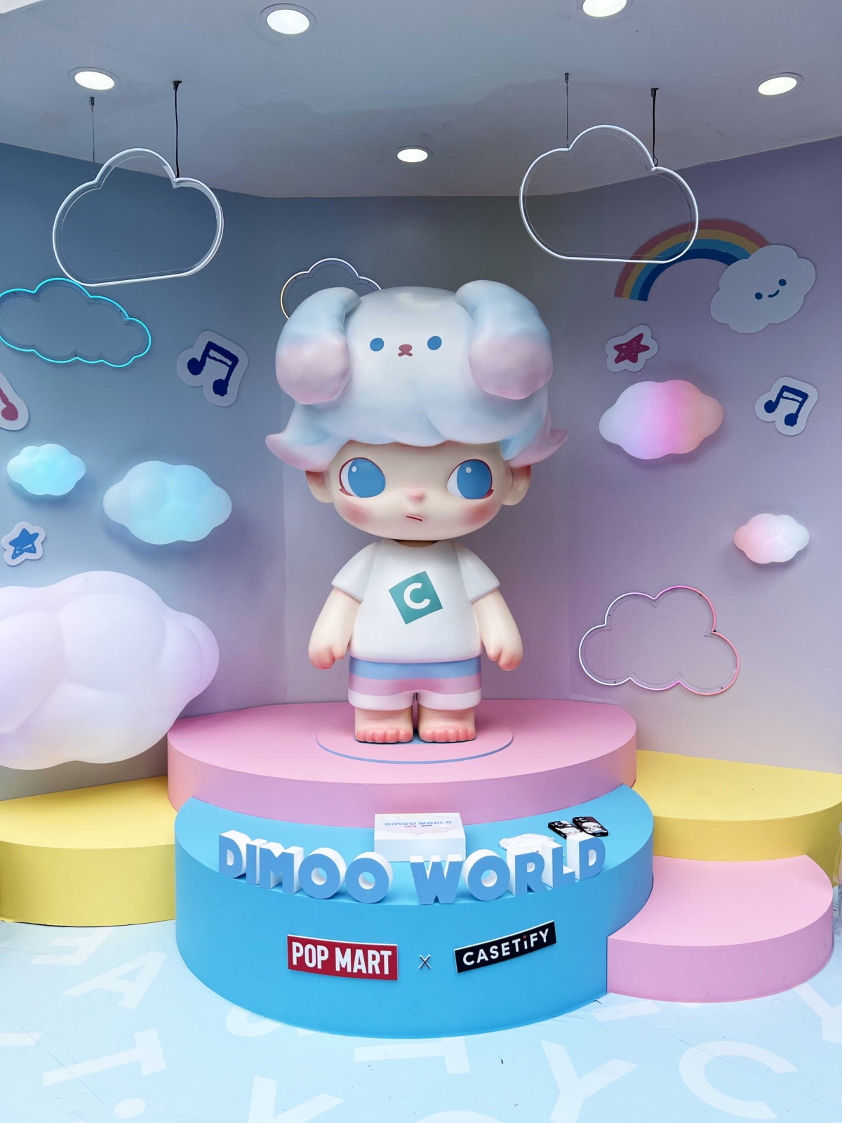 本次快閃體驗空間快閃以夢幻的漸層粉藍粉為主色,結合星星、音符、泡泡等天空元素及霓虹燈光,打造繽粉的雲朵派對。在幻彩雲朵主舞台有可愛的立體DIMOO登場,且每晚可欣賞幻彩燈光秀,瞬間點亮整個空間,粉絲們一定要在這邊與DIMOO合影留念。