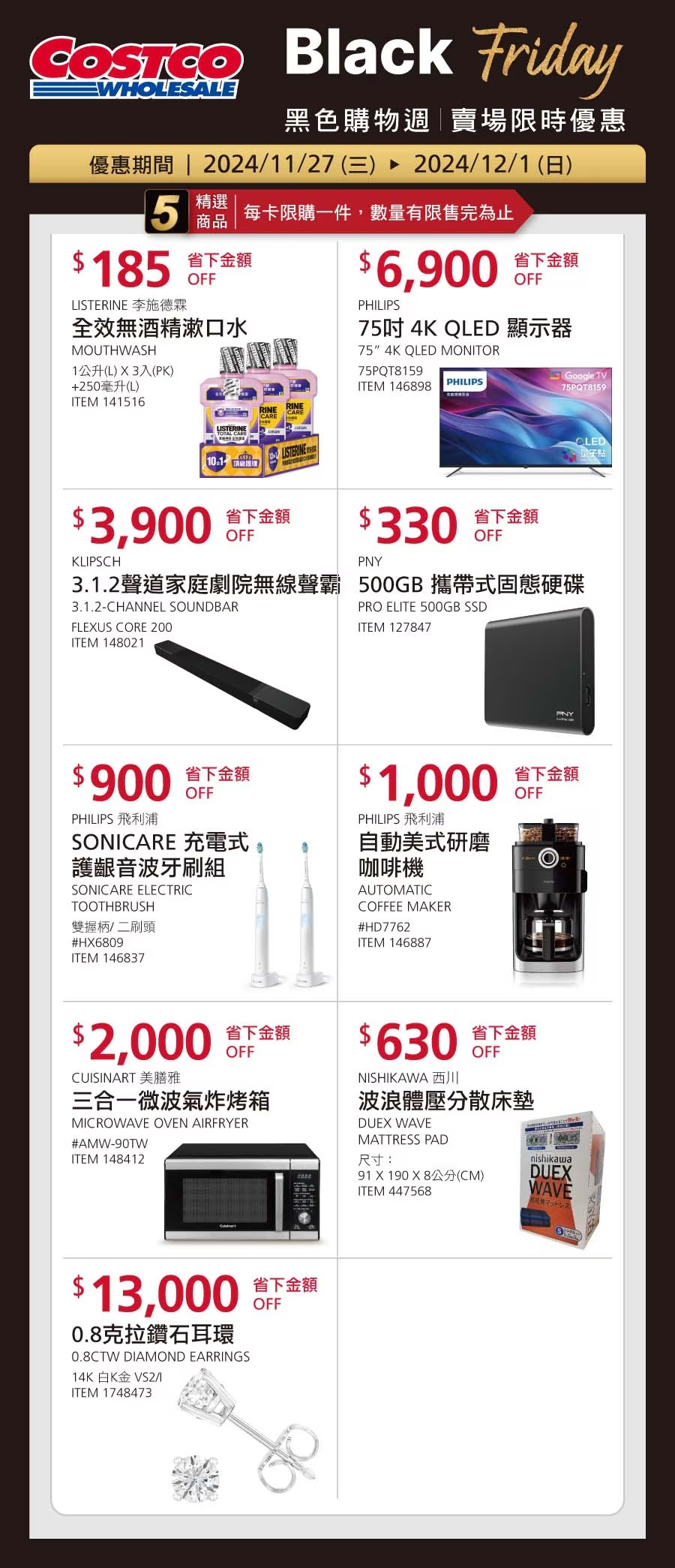 一年一度的黑色星期五來了!台灣好市多(Costco)在黑色購物週期間推出超過500款精選商品,優惠總價近百萬元!連續7天每日下午4點,好市多官方社群都會搶先公開隔日精選優惠,本文為大家鎖定每日最新折扣資訊,趕緊收藏!