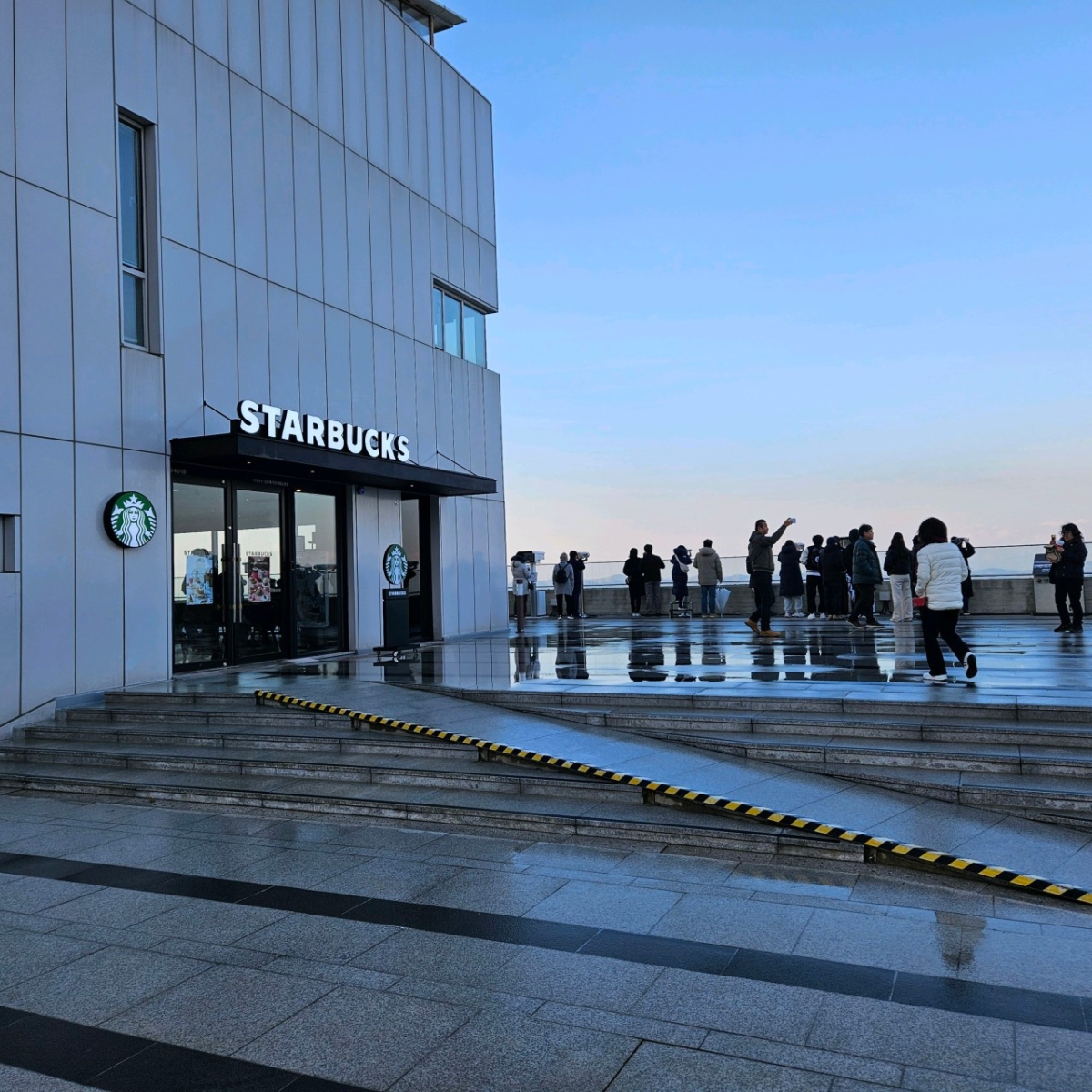 這間星巴克位於南韓京畿道金浦市「愛妓峰和平生態公園」內,在今年10月北韓炸毀南北共同聯絡鐵公路時,被列入危險區域。而被稱為全世界最危險星巴克的「金浦愛妓峰生態公園店」於11/29開幕,約提供30個座位,與北韓開豐郡對望,相距僅約1.4公里。