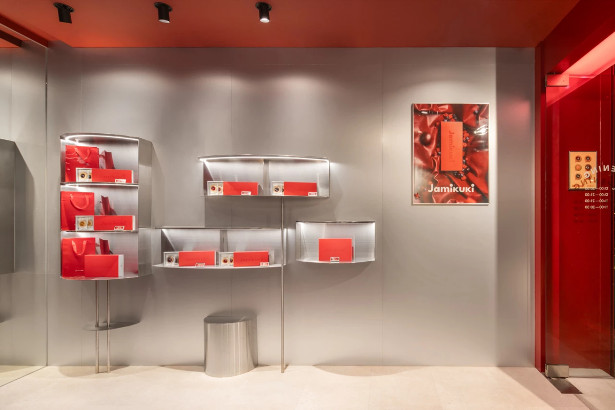 Jamikuki位於赤峰商圈巷弄內,店家紅色外觀與未來感銀色元素完美搭配,為甜點控們提供全新打卡場景;而店內設計則融合大膽色塊與法式慵懶風格,呈現獨特藝術氛圍。無論是享受下午茶時光,還是尋找伴手禮,喜歡甜點的你都不能錯過!