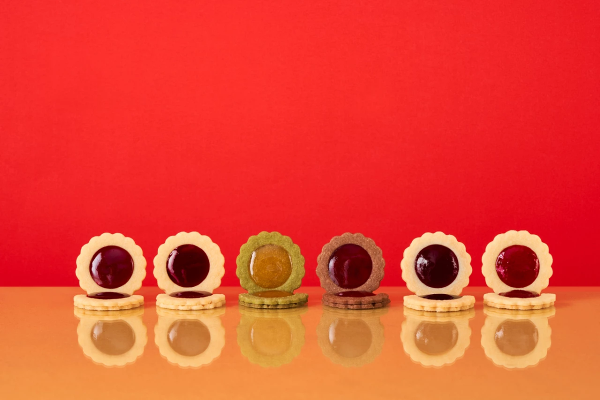 Jamikuki將傳統果醬餅乾進行全新升級,創造出濕潤又濃郁的果醬心,搭配鬆脆餅乾,完美展現軟硬兼備的口感層次。六款首發口味,包括酸櫻桃、覆盆子、柑橘、紅醋栗、草莓與黑醋栗,無論搭配咖啡、茶還是烈酒,都能碰撞出豐富的味覺驚喜。