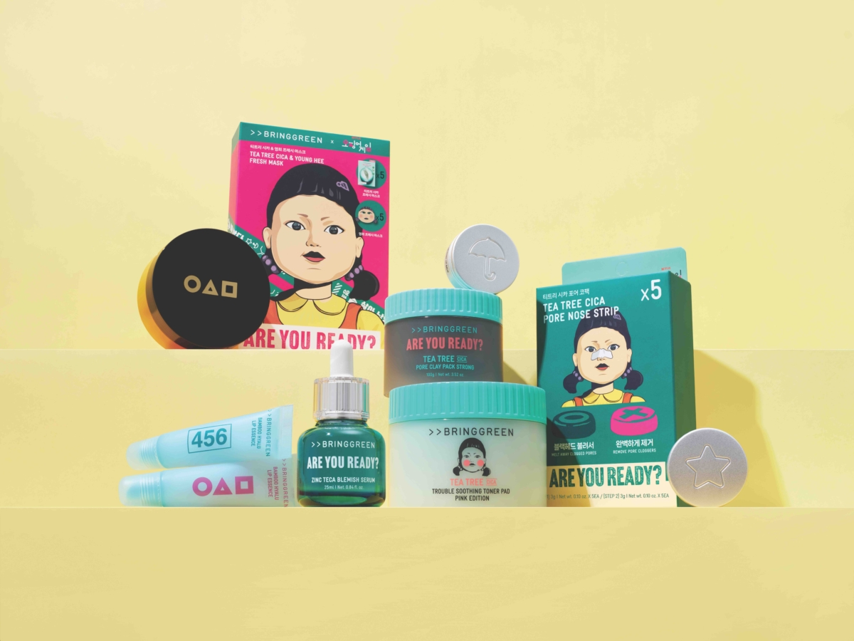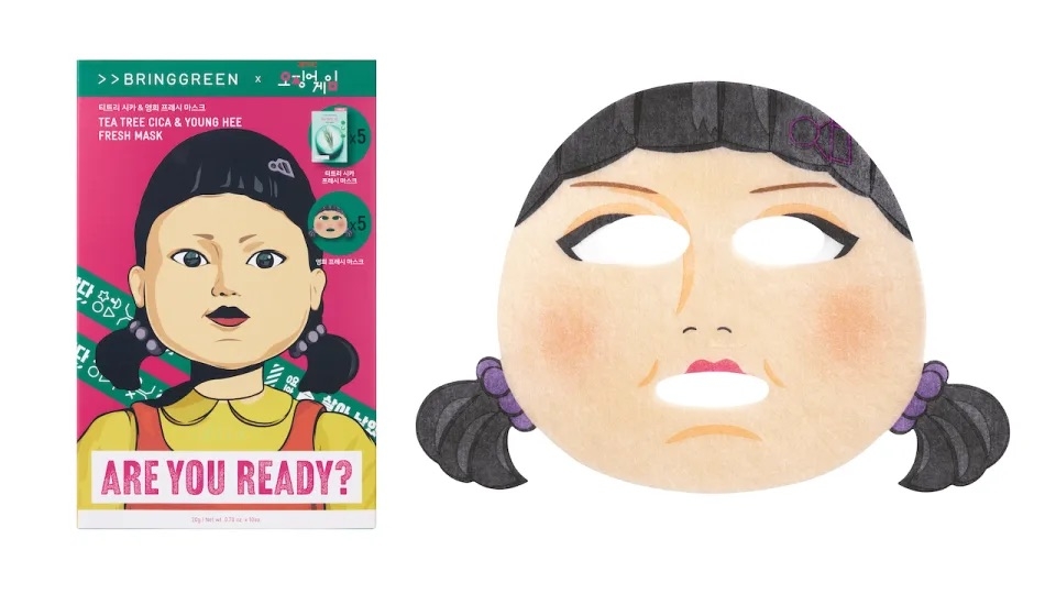 韓國旅遊必逛Olive Young旗下兩大品牌BRING GREEN、WAKEMAKE,推出一系列《魷魚遊戲2》聯名美妝,包含彩妝及保養品。最吸睛的是「英熙娃娃」造型面膜,敷面膜時要小心自己嚇到自己?