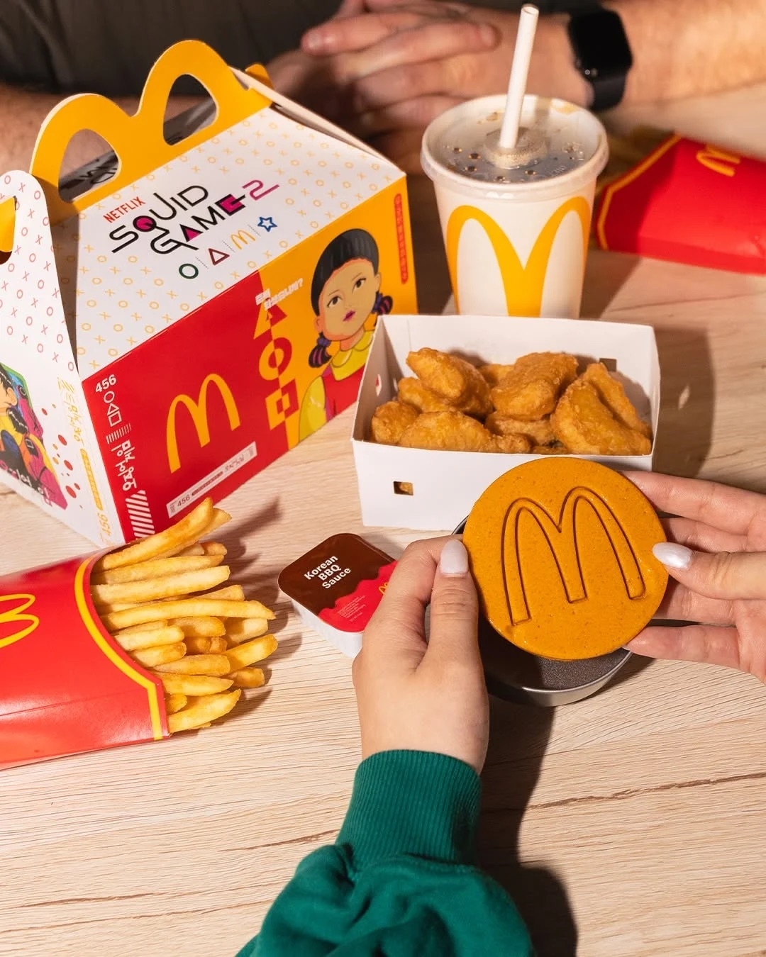 跟上這波熱潮,澳洲麥當勞推出「Macca's魷魚遊戲套餐」。不僅包裝以《魷魚遊戲》元素設計,套餐還會隨機附上圓形、三角形、星形與麥當勞招牌「M型」字母的椪糖圖案。若成功刻出M字,還有機會抽到10萬澳幣(約207萬台幣)大獎。
