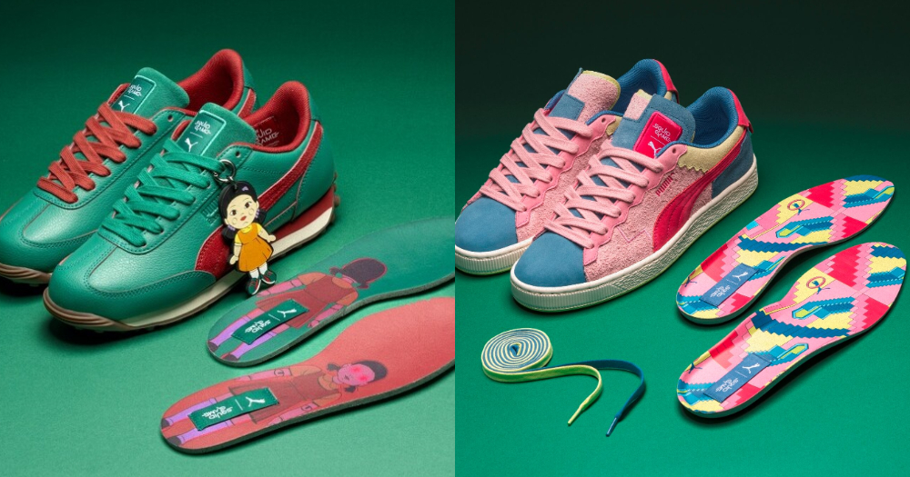 大家熟悉的運動品牌Puma則推出整套綠色、黑色運動裝,天鵝絨材質多了分時髦感。經典鞋款Easy Rider以一二三木頭人關卡為靈感,綠色鞋面摩擦後會變成紅色!另一雙Suede鞋款融入樓梯元素,藍粉配色非常吸睛。