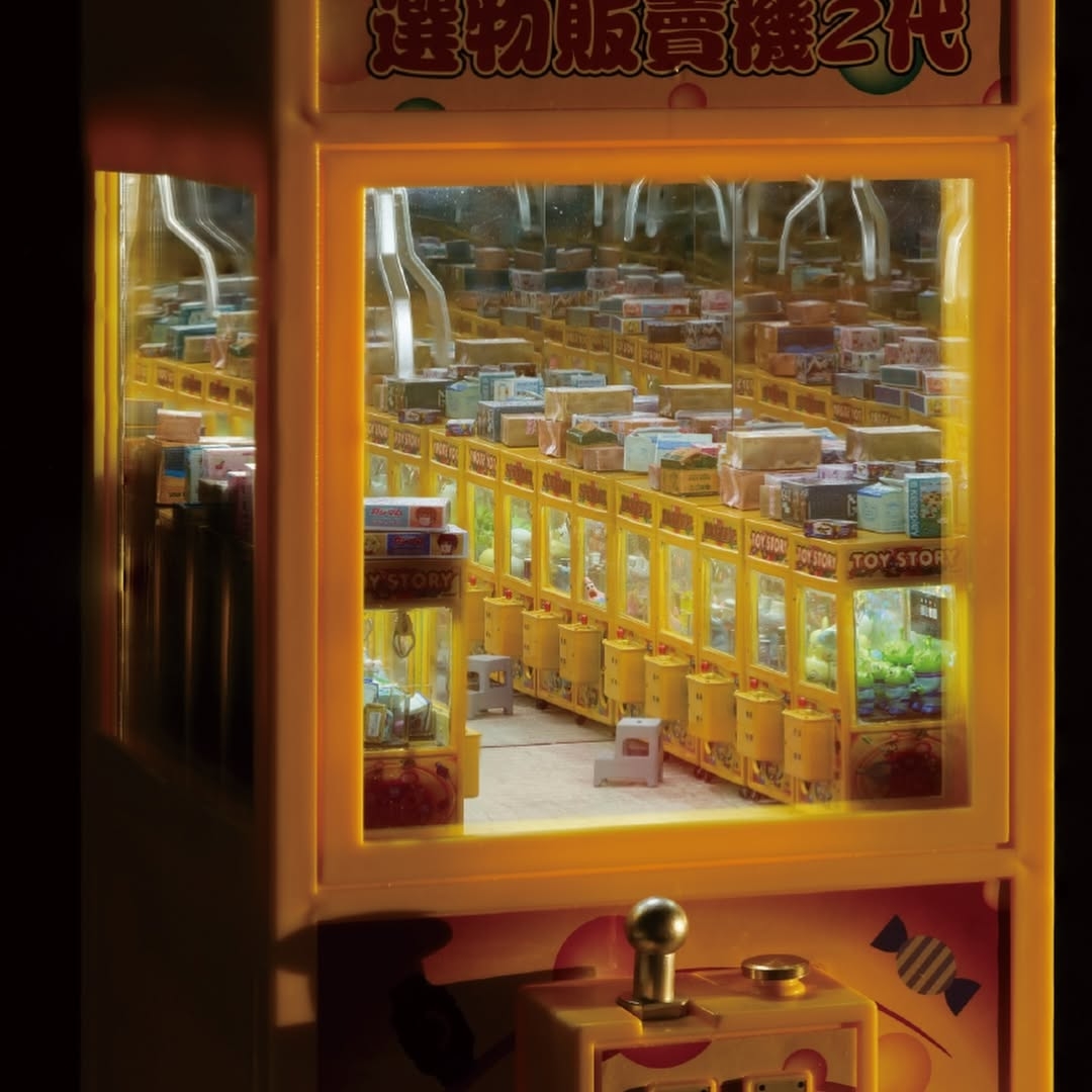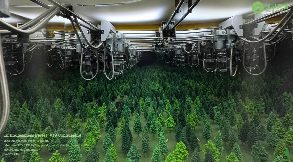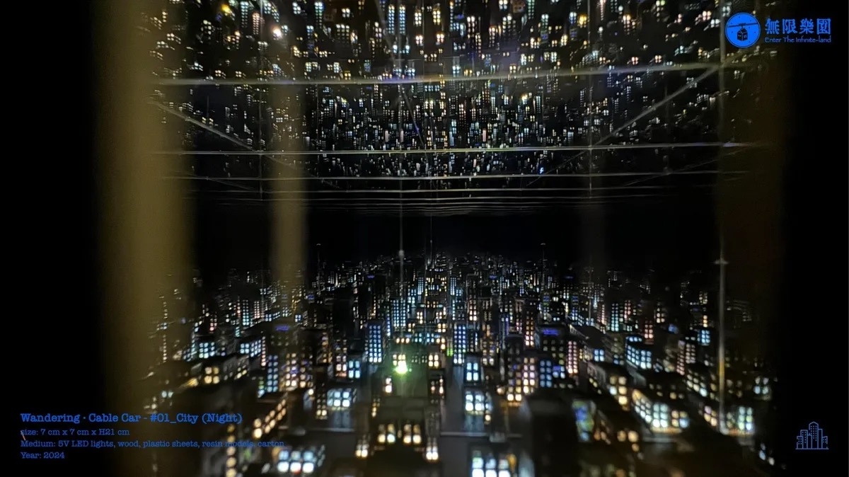 藝術家陳閃擅長以都市景觀與社會現象為題材,作品多以微型雕塑與鏡像技術為主,融合幽默與深刻的批判,展現出對城市生活的獨到觀察。而這次展覽《無限樂園》展出12件作品,包括6件舊作與6件全新創作,當中還有一系列機動裝置作品《遊》,在展場上方穿梭,營造出流動的視覺體驗。