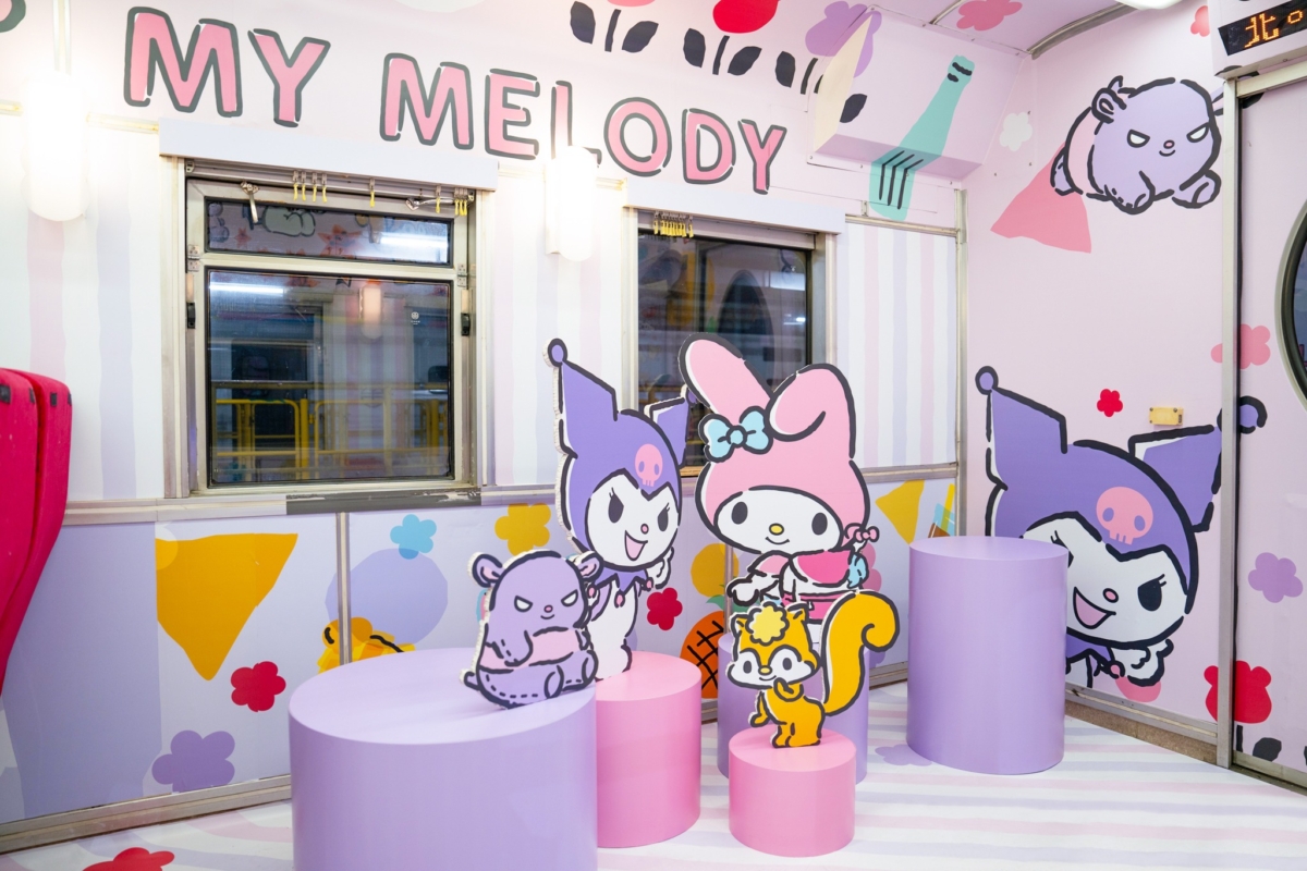第一節車廂為活動車廂,設計以粉嫩色系的美樂蒂與酷洛米為主題,每個角落充滿了打卡亮點。車廂內將不定期舉辦DIY體驗與節慶活動,此外更設置專屬拍貼機,提供「美樂蒂X酷洛米、布丁狗X大耳狗、人魚漢頓X蛋黃哥」三種設計相紙,讓旅客們收藏美好的瞬間。