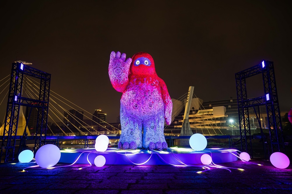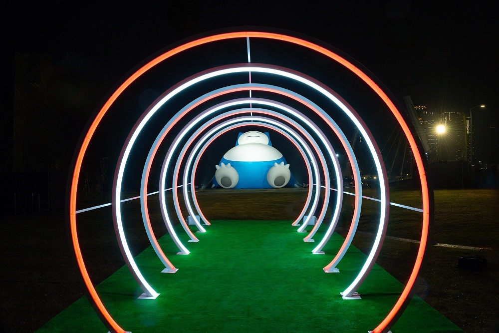 而在A19桃園體育園區站展區,則打造成充滿童趣的「光的遊戲場」,巨型寶可夢就在此出沒!共有「活力發光站」、「青春光劇場」、「城市聚光燈」、「光臨千塘國」、「福光滿意讚」5大燈區,約12公尺高卡比獸、6公尺高皮卡丘出沒在青塘園草坪,還有在地原創的《桃獸》也是必拍~