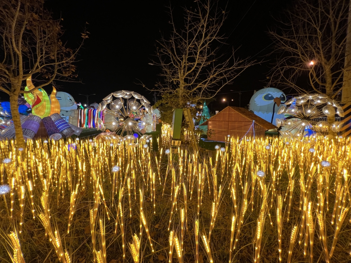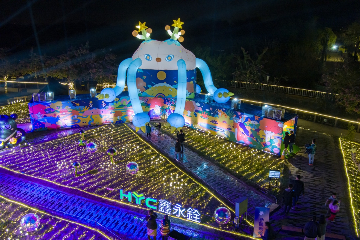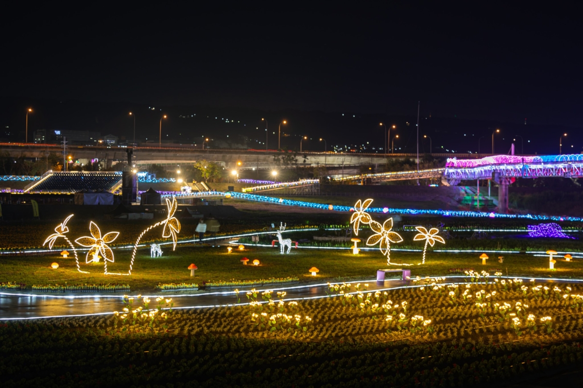 燈會共設置了11個主題燈區,從結合在地花卉的「萬花盛世」,到學生創作的「百步蛇Kaviaz的美麗傳說燈區」,每個燈區都有其獨特魅力。此外「彩影花蹤燈區」以兩公頃繽紛花海搭配巨型充氣燈組,還有艾菲爾鐵塔等世界地標的造紙藝術裝置。