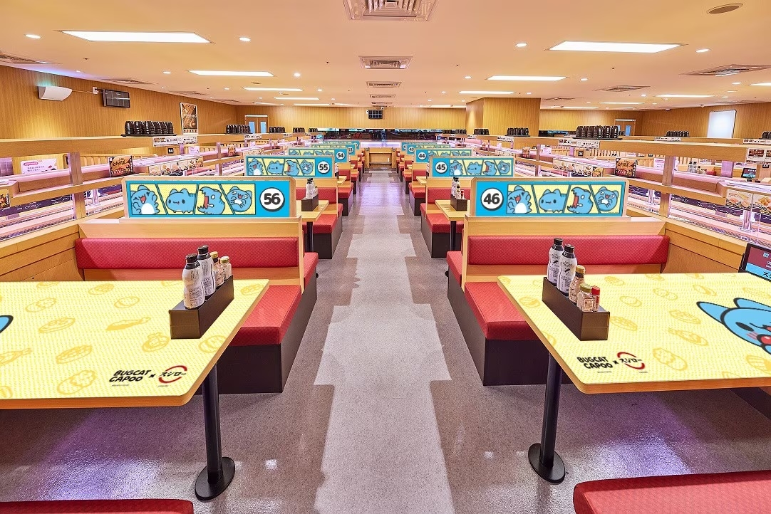 除了美食與周邊,這次還有三家壽司郎門市變身咖波主題店,包含新北新店中興路店、台中北屯松竹店和高雄義享天地店,不只裝潢充滿咖波元素,就連狗狗、兔兔、小雞等角色也可愛現身,粉絲們必須朝聖,感受咖波店長的魅力!