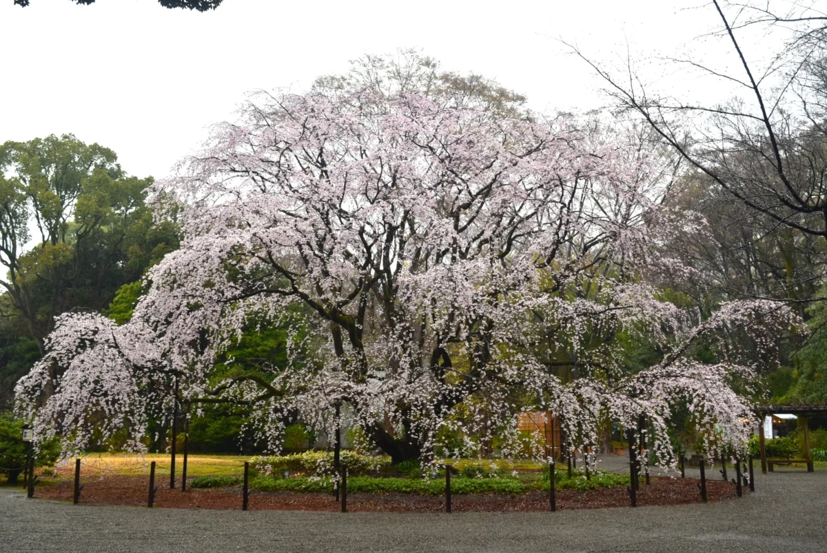 六義園內包含雙櫻花,染井吉野,山櫻花,垂枝櫻花樹,大島櫻花,江戶彼岸櫻花樹。而在正門附近的「大型垂枝櫻花樹」最為知名,高約15公尺、寬約20公尺的巨大身型佇立在園區中相當壯觀,櫻花盛開時期散發著莊嚴又柔情的獨特之美,是大家必欣賞的景點,一定要拍照留念!
