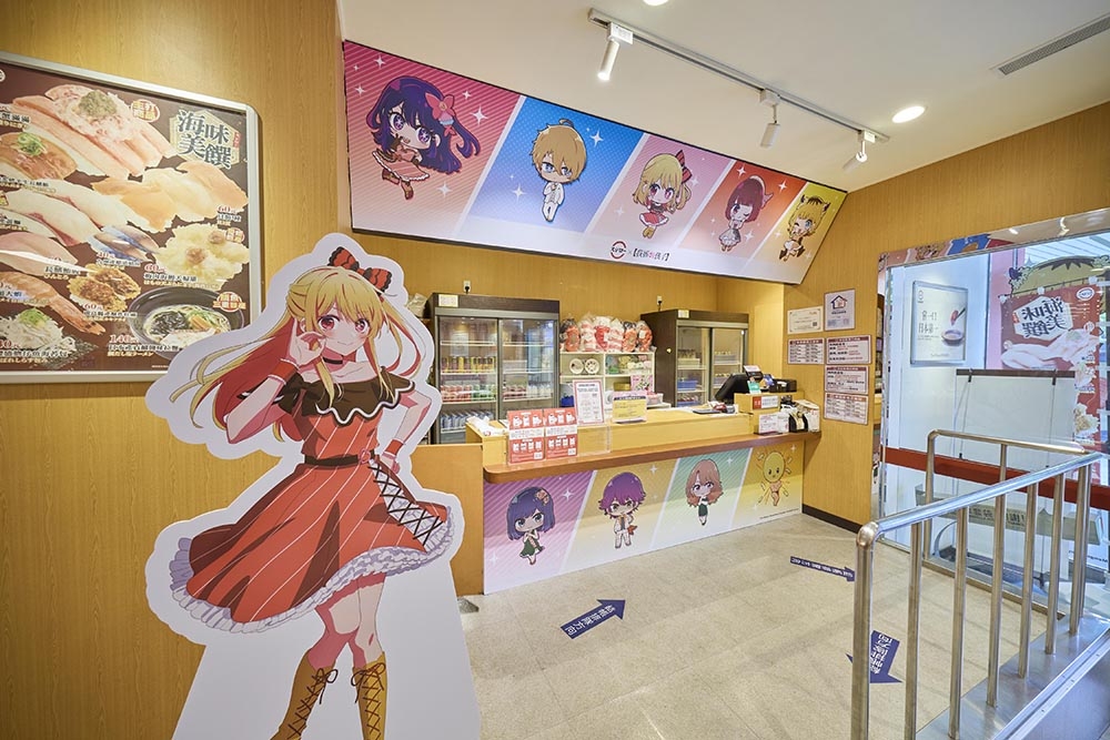 全台6家壽司郎門市化身專屬B小町主題店,讓人走進店內就像來到偶像應援現場!台北中華路店、高雄中正店是露比主題館,滿滿的紅色氛圍讓人一秒進入偶像世界;台南安平店、台中黎明店則由MEM CYO鎮守,熱情的黃光搭配活力裝飾,完美詮釋她的個性;桃園國際路店、彰化金馬店則是佳奈的主場,粉絲們快來支持你最愛的「推」吧!