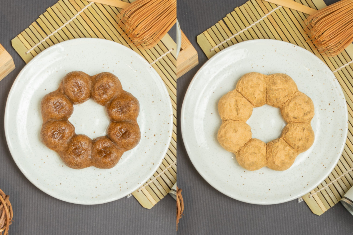 這次聯名的最大亮點,就是Mister Donut經典波堤系列!「濃抹茶卡士達波堤」將Q彈波堤剖半,夾入伊藤久右衞門特製的抹茶卡士達醬,再搭配抹茶可可沾醬與玄米碎粒,每一口都能感受到多層次的濃郁茶香;另一款「紅豆抹茶卡士達波堤」,更是加入了蜜紅豆與豆香粉,讓抹茶與紅豆的經典組合完美交融,甜而不膩。
