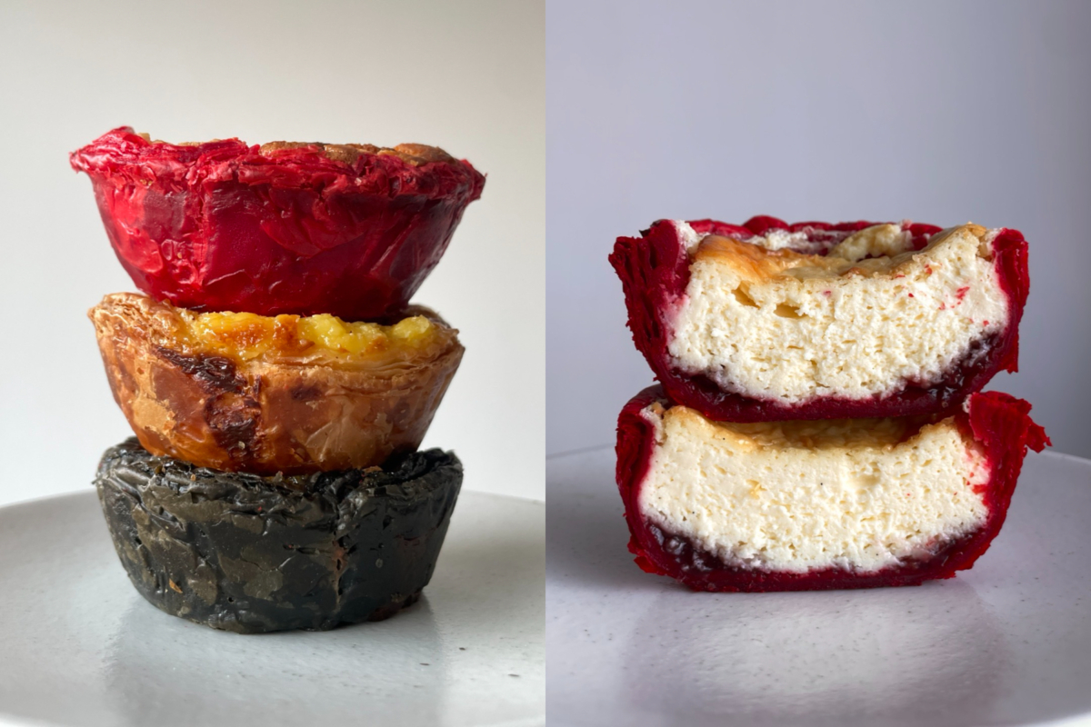 覆盆子可頌塔:甜菜根打造的豔紅色塔皮,內餡結合覆盆子醬與乳酪,酸甜不膩