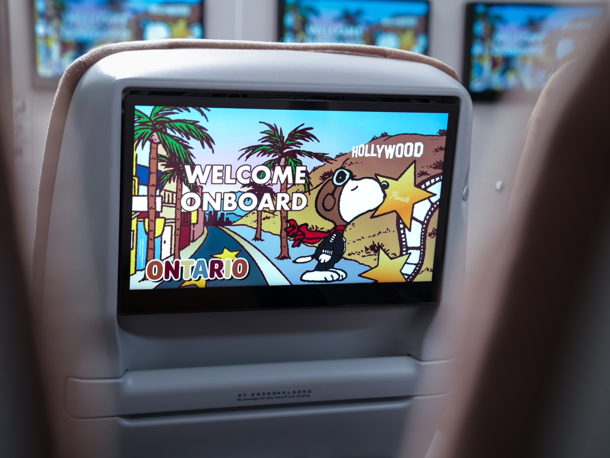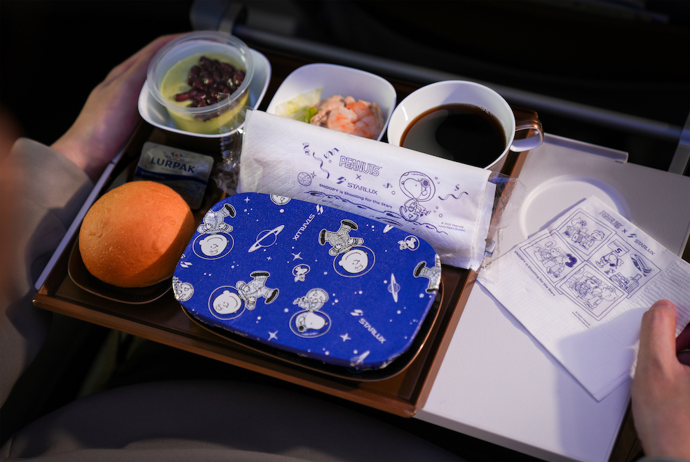 本次史努比主題航班以「Snoopy is Shooting for the Stars」為概念,為這位愛幻想的經典角色設立更遠大的目標。從登機開始,旅客便能沉浸在史努比的世界中,包含全新設計的登機證、行李吊牌、機上螢幕、紙巾、紙杯等各項備品,皆換上宇宙藍與星光金的太空主題設計,打造前所未有的乘機體驗。
