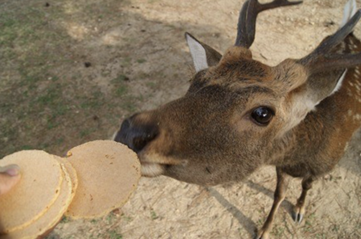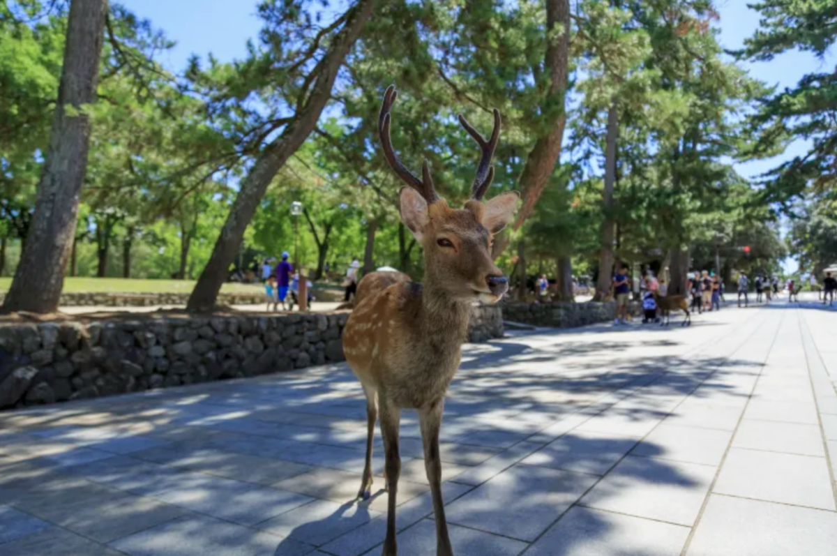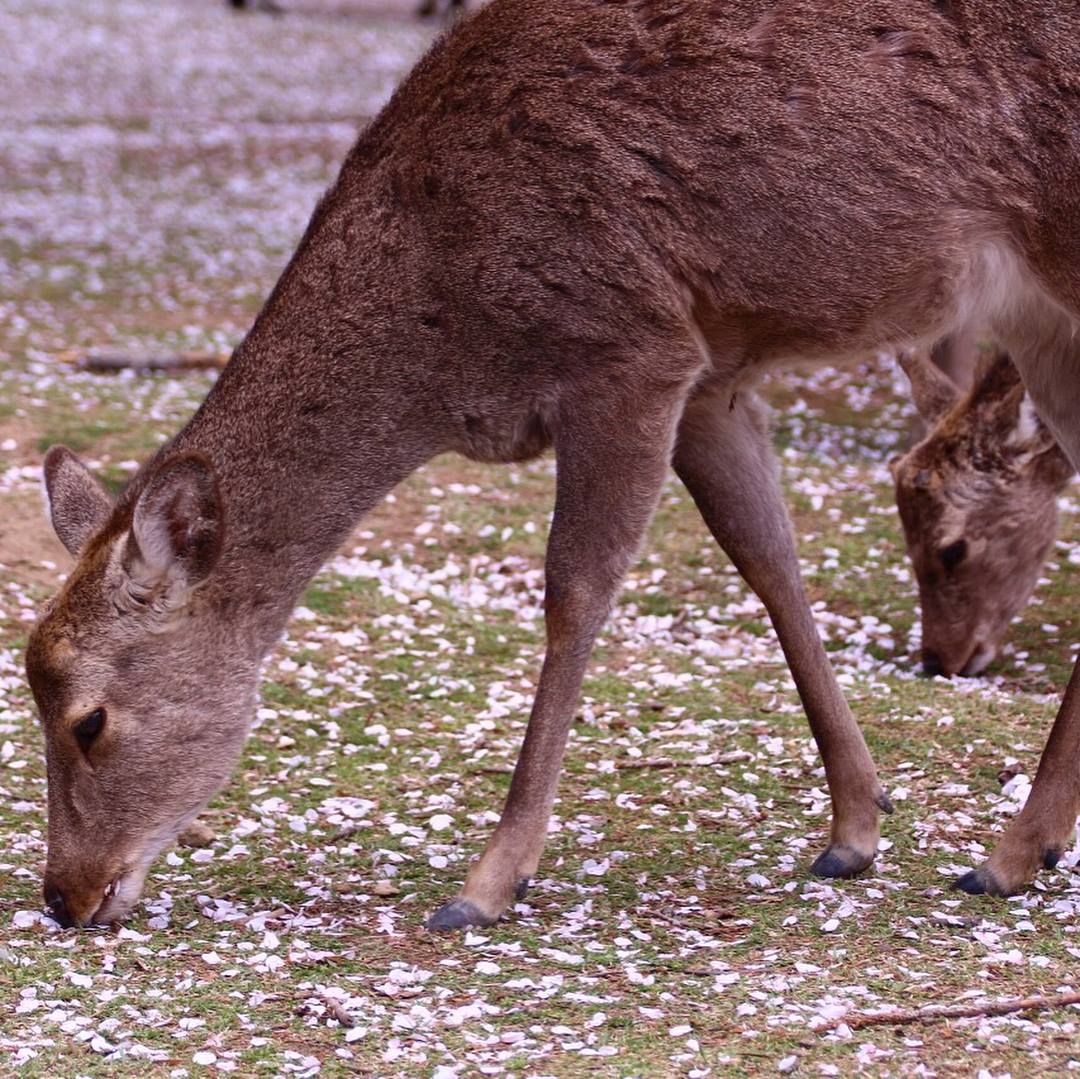 公園內約有1,300隻奈良鹿,可見牠們在公園各處悠閒地漫步或休憩,近年夏天時更出現鹿群卡位灑水裝置消暑的有趣景象。而遊客們可以購買專用的「鹿仙貝」餵鹿,或是與鹿在櫻花的點綴下合照,但同時要注意避免突如其來的驚嚇或過於激烈的接觸,以免造成鹿的緊張。