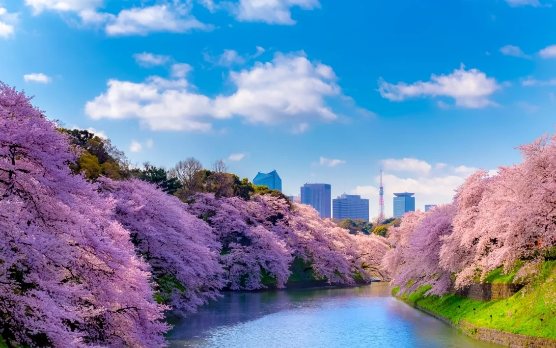千鳥淵綠道是護城河內風景最秀麗的景點,春天時全長 700 公尺的櫻花道將會沿著河畔綻放,呈現旖旎迷人、美不勝收的景色。同時會舉行千代田櫻花祭,在夜晚造訪時,還可以欣賞燈光照耀下的璀璨櫻花。櫻花季接近尾聲時,護城河的河面會布滿片片花瓣,呈現出如夢似幻的粉紅河流景象。