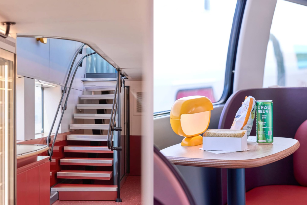 除了精心設計的車廂外觀,INOUI也在功能性上用盡心思。雙層車廂的下層為餐點自助區,而上層則是法式小酒館,提供乘客能一邊旅行、一邊品嚐地道法國料理與葡萄酒。在高速行駛的列車上吃法國菜,彷彿戲劇主角般的體驗!