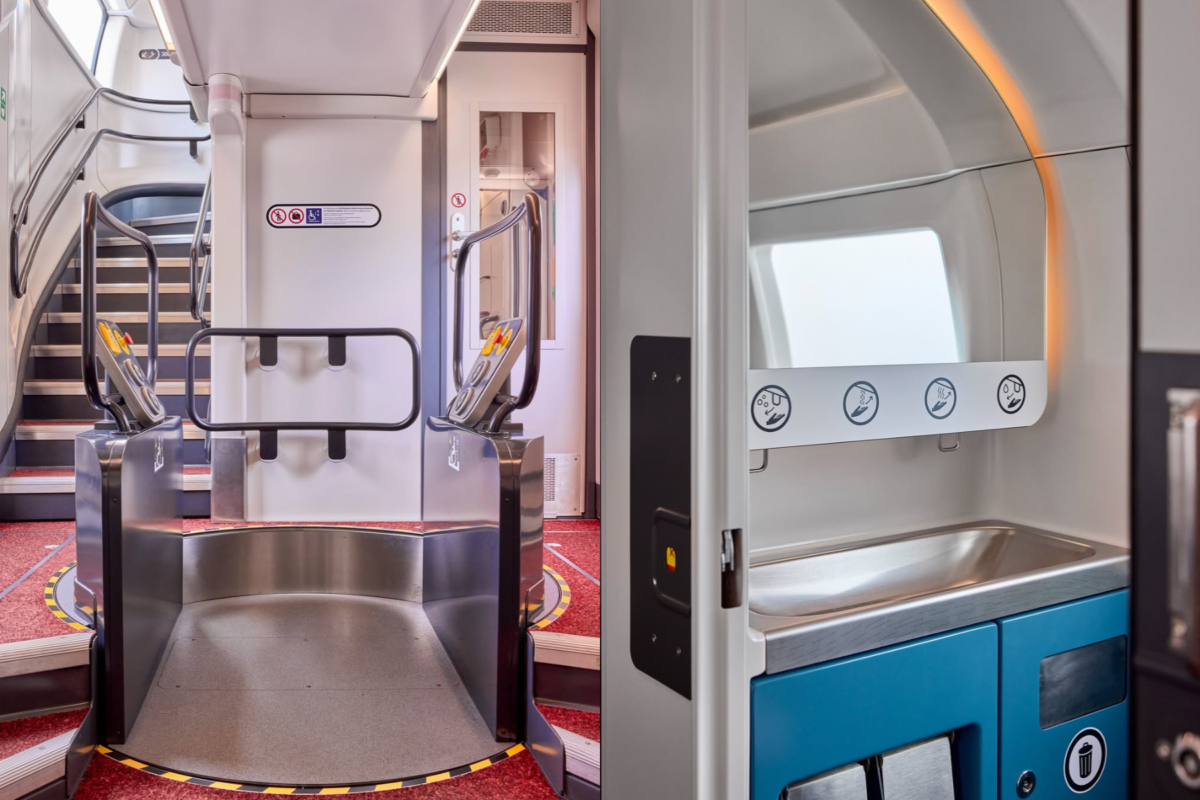 INOUI的用心還體現在每個使用細節上,設計團隊邀請列車司機與維修人員參與設計,並用虛擬實境模擬駕駛,確保每一項配置都實用到位。親子友善空間、尿布台、微波爐、輪椅無障礙設施一應俱全,讓旅途更加人性化。