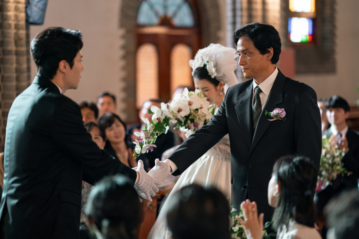 金明牽著爸爸寬植的手步入禮堂,絕對是讓觀眾大爆淚的瞬間!這間歌德式結婚禮堂是位於大邱的主教座桂山大聖堂,復古且莊重,若有機會到大邱旅行一定要朝聖~