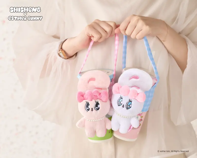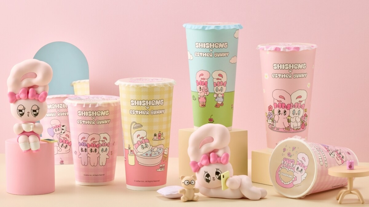 「十盛奶茶專賣」這回邀請到超人氣角色「Esther Bunny艾絲樂小兔」合作,推出4款繽紛紙杯與杯膜,除此之外,還有2款絨毛玩偶杯套,造型以立體珍珠項鍊為設計,不只能作為吊飾也能變身杯套,既實用又充滿收藏價值!